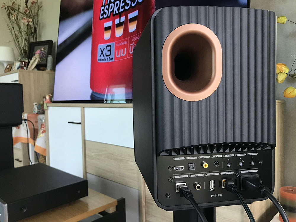 วิศวกรของ KEF เปิดโอกาสให้คุณใช้งาน LS50 Wireless II กับสัญญาณเสียงจากอุปกรณ์ภายนอกได้หลากหลายและครบถ้วนมาก เริ่มจากให้ขั้วต่อ HDMI มาสำหรับเชื่อมต่อกับช่อง ARC หรือ eARC ของทีวีเพื่อรับสัญญาณเสียงจากทีวีมาขยายผ่าน LS50 wireless II ซึ่งเป็นการอัพเกรดระบบเสียงของทีวีที่มีประสิทธิภาพมาก โดยเฉพาะคนที่ใช้ทีวีขนาดใหญ่ตั้งแต่ 55 นิ้วขึ้นไปจะรู้สึกแฮ้ปปี้มากเป็นพิเศษ เพราะ LS50 Wireless II จะทำให้เสียงของทีวีมีลักษณะที่เปิดกว้างมากขึ้น โอ่อ่ามากขึ้น สนามเสียงจะแผ่กว้างออกไปทัดเทียมกับขนาดของทีวีมากขึ้น และด้วยประสิทธิภาพของระบบเสียงสเตริโอที่ LS50 Wireless II ถ่ายทอดออกมา ทำให้ตำแหน่งของเสียงจากลำโพง LS50 Wireless II กับภาพบนจอมีความสัมพันธ์ตรงกันมากกว่าเสียงจากลำโพงของทีวีมาก ดูหนังเพลินขึ้นเยอะ (*ถ้าให้สมบูรณ์มากขึ้นไปอีกขั้น แนะนำให้เพิ่มลำโพงซับวูฟเฟอร์ของ KEF ที่ออกแบบมาด้วยกันคือรุ่น KC62 จะได้ความกระหึ่มเพิ่มขึ้นเวลาดูภาพยนตร์จาก Netflix)