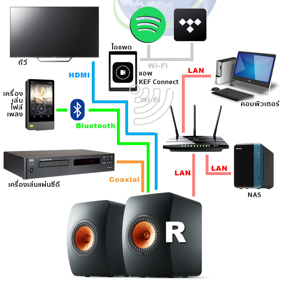 ผังการเชื่อมต่ออุปกรณ์ต่างๆ เข้ากับ LS50 Wireless II