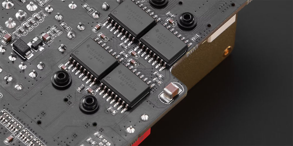 เพื่อป้องกันปัญหาจากการรบกวนทางด้าน ground ระหว่างวงจรที่ทำงานกับสัญญาณดิจิตัลและวงจรที่ทำงานกับสัญญาณอะนาลอก ไม่ให้ noise ข้ามไปมาถึงกัน พวกเขาเลือกใช้วิธี “ตัดแยก” ระหว่างวงจรที่ทำงานกับสัญญาณดิจิตัลกับวงจรที่ทำงานกับสัญญาณอะนาลอกด้วยเทคนิค galvanic isolation ที่สามารถตัดปัญหาการแพร่กราวนด์ถึงกันได้อย่างเด็ดขาด