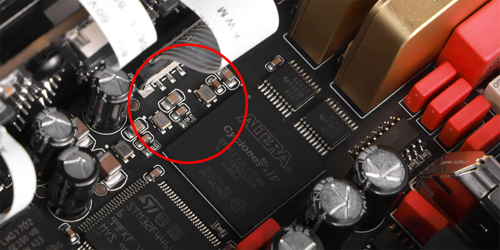 โมดูล R-2R ที่ใช้ในตัว Harmony µDAC ถูกดีไซน์ให้ทำงานเป็นแบบบาลานซ์ โดยประกอบขึ้นจาก “รีซีสเตอร์” (resistors) ที่มีความแม่นยำสูงจำนวนมาก ซึ่งทั้งหมดนั้นมีความเบี่ยงเบน ไม่เกิน 0.05% เพื่อให้การแปลงสัญญาณดิจิตัลเป็นอะนาลอกมีความถูกต้องไม่ผิดเพี้ยน