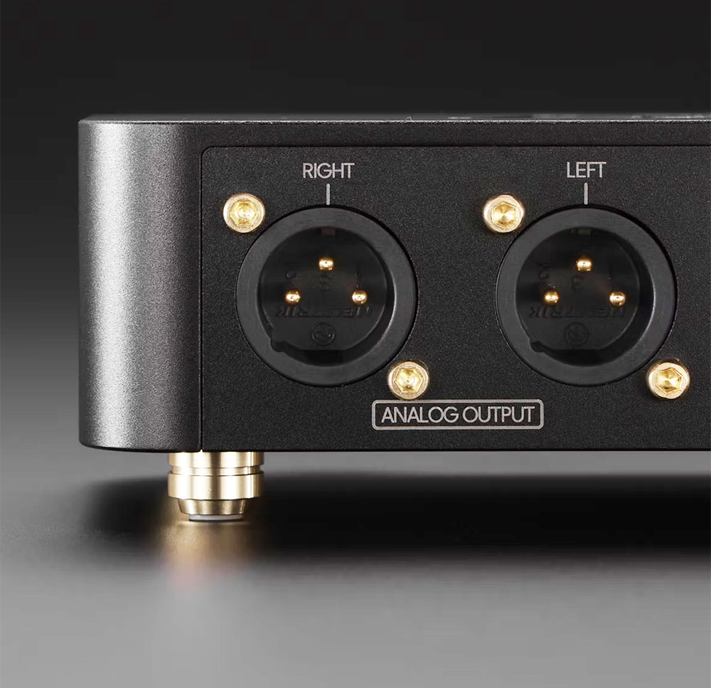 ทางซ้ายมือของแผงหลังเป็นช่องเอ๊าต์พุตของสัญญาณอะนาลอก (11) ซึ่ง ext.DAC ของ LAiV Audio ตัวนี้ให้มาโดยผ่านออกทางขั้วต่อ XLR แค่ชุดเดียว.. เอาจริงเด๊ะ..!! นี่ถ้าคนออกแบบเขาไม่อินดี้มาก ก็ต้องเป็นพวกที่คลั่งไคล้ไฮเอ็นด์ฯ แน่ๆ ถึงไม่มีช่องเอ๊าต์พุต RCA มาให้.. ทำไมผมถึงมองแบบนั้น.? ก็ดูจากข้อมูลในสเปคฯ ของผู้ผลิตที่ระบุไว้ว่า สัญญาณอะนาลอกที่ช่องเอ๊าต์พุต XLR ของ Harmony µDAC ตัวนี้ออกแบบมาเพื่อให้สามารถรองรับกับการเชื่อมต่อไปที่อินพุตของแอมป์ที่มีระยะห่างกันมากๆ ได้โดยที่สัญญาณไม่ตก เหตุผลก็เพราะว่าเขาจัดสัญญาณอะนาลอก เอ๊าต์พุตที่มี gain สูงถึง 4Vrms เอาไว้รองรับ นี่มันเป็นไอเดียการออกแบบที่ตั้งใจตอบสนองนักเล่นไฮเอ็นด์ฯ ชัดๆ ซึ่งก็เข้าทางของผมซะด้วย เพราะผมชอบวางแหล่งต้นทางไว้ด้านข้างจุดนั่งฟัง แล้วลากสายสัญญาณยาว 6-7 เมตร ไปหาแอมป์ที่วางอยู่บนพื้นห้องตรงพื้นที่ระหว่างลำโพงซ้าย-ขวา ซึ่ง gain เอ๊าต์พุตของ Harmony µDAC ที่บอกว่าอยู่ในระดับ 4Vrms นี่ถือว่าอยู่ในระดับเดียวกับ ext.DAC ไฮเอ็นด์ทั่วไปเลยนะเนี่ย อือมม.. ต้องลองซะแล้ว.!!!