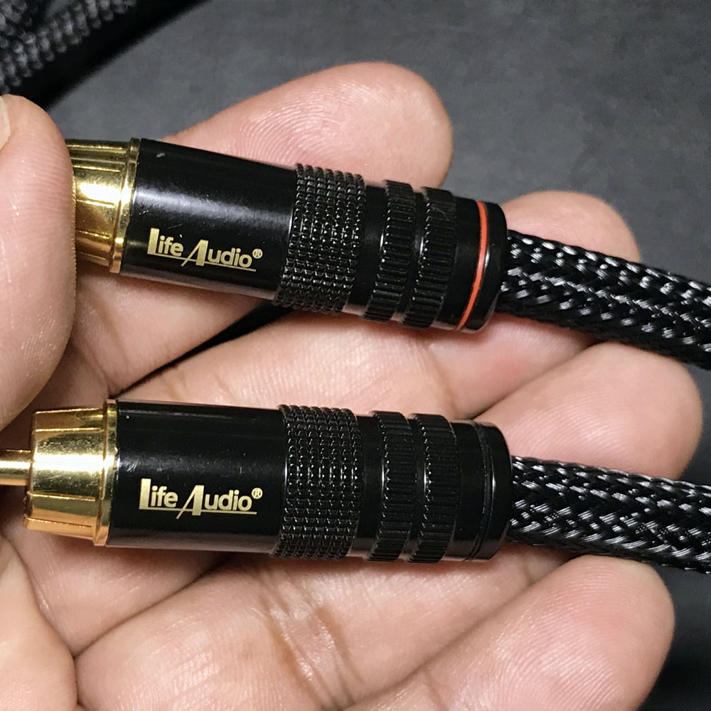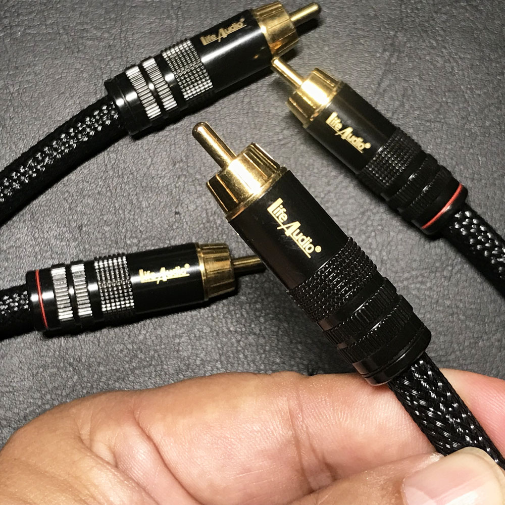 นี่เป็นสายสัญญาณของ Life Audio รุ่นแรกที่ผมได้มีโอกาสทดสอบ ชื่อรุ่นคือ “Gold Limited” คำว่า “Gold” นั้นได้รับแรงบันดาลใจมาจากเทคนิคในการเคลือบตัวนำที่ใช้ในสายรุ่นนี้ ซึ่งตัวนำที่ใช้ก็คือทองแดง OFC (Oxygen Free Copper) ที่เคลือบทับผิวด้วยโลหะทองนั่นเอง ส่วนคำว่า “Limited” นั้นก็เพราะต้องการสื่อให้รู้ว่า พวกเขาจะผลิตสายสัญญาณรุ่นนี้ออกมาจำหน่ายจำนวน 999 ชุดเท่านั้น หลังจากนั้นก็จะเลิกสายการผลิต