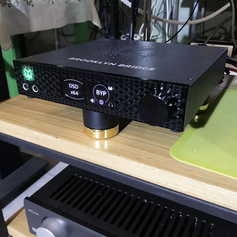 อาการได้อย่าง–เสียอย่างคล้ายๆ กับตอนใช้รองใต้อินติเกรตแอมป์ Vena II Play ก็คือตอนทดลองรองใต้ตัวสตรีมเมอร์ของ MyTek รุ่น Brooklyn Bridge แต่ประเด็นต่างกัน คือรองใต้ Brooklyn Bridge ในซิสเต็มนั้น ผมได้ยินเสียงที่บางลงทั้งย่าน แต่โปร่งขึ้น รับรู้ถึงไดนามิกคอนทราสน์ของเสียงได้ชัดขึ้น ช่วงนักร้องเอื้อน–ทอดเสียงฟังดีขึ้น ติดตามได้ตลอดมากขึ้น การทอดปลายเสียงก็เหมือนจะปล่อยยาวมากขึ้นด้วย แต่ข้อที่ด้อยลงคือน้ำหนักเสียงที่ด้อยลง ถ้าผมจะยึดข้อดีในแง่ไดนามิก คอนทราสน์ที่ดีขึ้นเอาไว้จากการรองด้วย Mellow-E ผมต้องไปทำการปรับจูนตรงจุดอื่นของซิสเต็มเพื่อเพิ่มเติมน้ำหนักเสียงขึ้นมา ซึ่งอาจจะเป็นการปรับเปลี่ยนแอมปลิฟายที่ใหญ่ขึ้น หรือเปลี่ยนไปใช้ลำโพงที่ให้เสียงทุ้มมากขึ้น ..