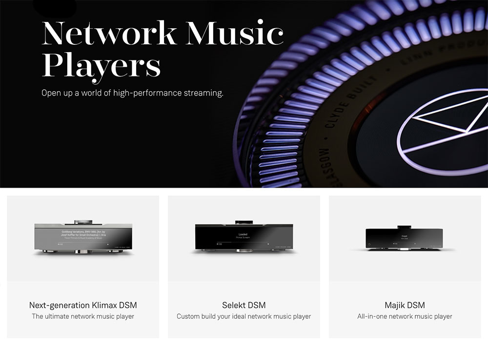 LINN เรียกผลิตภัณฑ์ประเภทเครื่องเล่นไฟล์เพลง หรือสตรีมเมอร์ของพวกเขาว่า Network Music Player ซึ่งขณะนี้มีอยู่ทั้งหมด 3 รุ่น คือ Klimax DSM รุ่นท็อป, Selekt DSM รุ่นกลาง และ Majik DSM รุ่นเล็ก โดยที่ข้อมูลของทั้งสามรุ่นนั้นได้ถูกรวมไว้ในเว็บไซต์ที่หัวข้อ ‘Network Music Players’