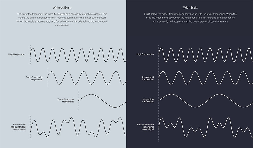 ก็ไม่ใช่ว่าผู้ผลิตลำโพงแต่ละเจ้าจะไม่รู้ถึงปัญหา Timing Error ที่ว่านี้ พวกเขารู้กันหมดแหละ เหลือแต่ว่าจะแก้ปัญหาได้ดีแค่ไหนเท่านั้น.. ซึ่งแต่ละเจ้าต่างก็มีเทคนิคในการแก้ปัญหานี้ที่ต่างกันออกไป บ้างก็ใช้วิธีวางตำแหน่งไดเวอร์ทุ้ม–กลาง–แหลมให้มีลักษณะเหลื่อมกันในแนวตั้ง เพื่อชดเชยความเร็ว–ช้าในการเดินทางของความถี่แต่ละย่านจากตัวลำโพงมาถึงจุดนั่งฟัง บ้างก็ใช้วิธีเอียงตัวตู้ให้เอนไปทางด้านหลังเพื่อชดเชยไทมิ่งในการเดินทางของความถี่ย่านกลางกับแหลมให้ช้ากว่าทุ้ม เพื่อให้เดินทางไปถึงจุดนั่งฟังพร้อมกัน และมีอยู่มากที่ใช้วิธี “หน่วงเวลา” ในการเริ่มต้นเดินทางของความถี่ในย่านแหลมและกลางเอาไว้แล้วปล่อยทุ้มออกมาก่อน เป็นการชดเชยผ่านวงจรเน็ทเวิร์ค.. ทั้งหมดนั้นเป็นการแก้ปัญหาโดยการชดเชยด้วยวิธีพาสซีฟ (อะคูสติก / วงจรอิเล็กทรอนิคส์แบบไม่ใช้ไฟเลี้ยง) ในขณะที่ LINN เลือกใช้วิธีแก้ปัญหานี้ด้วยวิธีแอ๊คทีฟ โดยใช้เทคโนโลยีที่พวกเขาคิดค้นขึ้นมาเองและตั้งชื่อเรียกมันว่า EXAKT