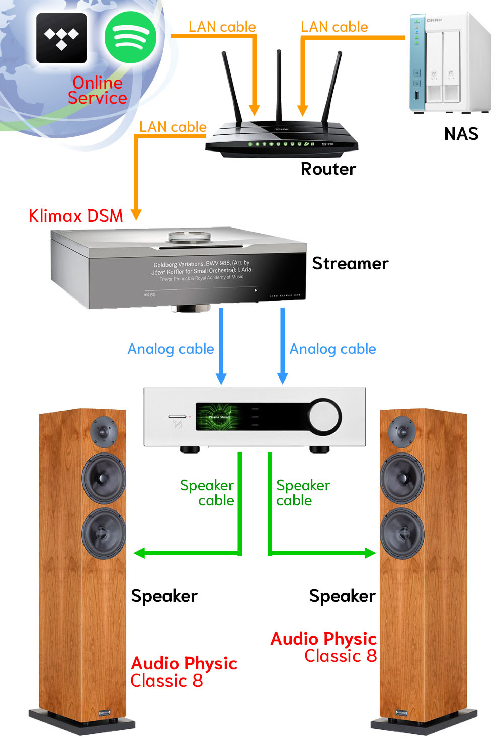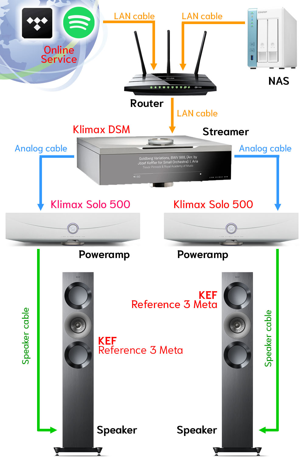 เสียงที่ได้ยินมันคือเสียงที่มือกีต้าร์กระหน่ำพลังลงไปบนสายกีต้าร์แล้วสะบัดข้อมือรัวๆ มันเป็นเสียงที่ ชัดและกระจ่างกว่าที่เคยได้ยินมา.. มากก!! อาการแผดจ้าแสบหูไม่ปรากฏออกมาเลย ยิ่งเร่งวอลลุ่มก็ยิ่งมัน โอ้วว.. เครื่องเสียงดีๆ มันเป็นอย่างนี้นี่เอง.!!! หลังจากนั้นเพลง Money For Nothing กับ Walk Of Life ก็ตามมาด้วยระดับความดังของเสียงที่ “คับห้อง” โดยไม่มีอาการแผดจนแสบหูเลย มีแต่ความมันส์ในอารมณ์ล้วนๆ.! ซึ่งเครื่องเสียงชิ้นแรกในซิสเต็มนี้ที่ต้องยกเครดิตให้ก็คือ “สตรีมเมอร์” Klimax DSM เพราะมันเป็นด่านแรกที่ “ดึง” เอารายละเอียดออกมาจากไฟล์เพลงก่อนจะป้อนต่อไปที่แอมป์ ถ้าสตรีมเมอร์ไม่ดี ผลิตสัญญาณต้นทางที่ไร้คุณภาพออกมา มีความเพี้ยนสูง ขจัด noise ออกไปได้ไม่หมดจดจริงๆ แน่นอนว่าแอมป์ก็จะเอาสัญญาณที่มีปัญหานั้นไปขยายผ่านออกทางลำโพง ซึ่งเป็นที่มาของอาการแผดแสบหูที่ว่านั้น