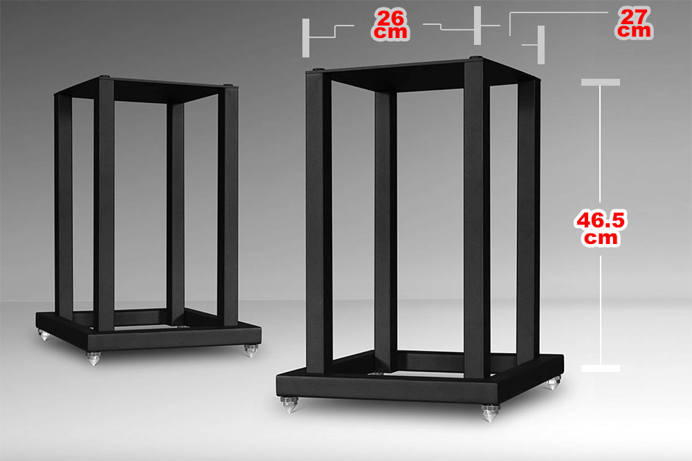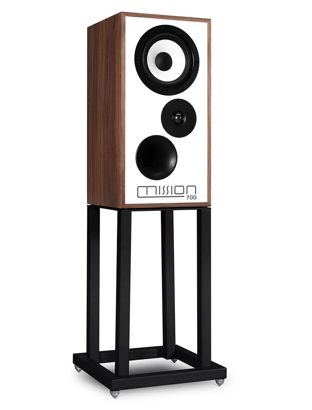 เพราะตัวตู้ที่ใหญ่และสูงถึง 51 .. ซึ่งสูงกว่ามาตรฐานของลำโพงสองทางวางขาตั้งทั่วไป ขาตั้งของ Mission 700 คู่นี้จึงต้องถูกออกแบบขึ้นมาโดยเฉพาะ โดยมีความสูงอยู่ที่ 46.5 .. หรือประมาณ 18.5 นิ้ว ไม่รวมเดือยแหลม ซึ่งต่ำกว่าความสูงของขาตั้งของลำโพงสองทางวางขาตั้งที่มีขนาดเล็กทั่วไปที่มีความสูงอยู่ที่ 24 นิ้ว ขาตั้งของ Mission 700 มีลักษณะเป็นโครงโปร่ง น้ำหนักเบา จัดอยู่ในกลุ่ม Low-Mass มีแผ่นแพลทเฉพาะด้านบนที่ใช้รองรับฐานของตู้ลำโพง ทำด้วยโลหะบางๆ มีเดือยแหลมมาให้ติดตั้งที่มุมด้านล่างทั้งสี่มุมของขาตั้ง ซึ่งนอกจากจะช่วยให้ขาตั้งจิกอยู่บนพื้นห้องได้อย่างมั่นคง ตัวเดือยแหลมมีเกลียวที่สามารถปรับระดับสูงต่ำได้ และช่วยปรับระนาบของลำโพงให้ตั้งฉากกับพื้นห้องด้วย
