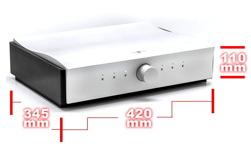 ตัวนี้เป็นเพาเวอร์แอมป์สเตริโอที่ Mola Mola ทำออกมาภายใต้รูปลักษณ์ตัวถังที่มีขนาด half size คือกว้างแค่ 21.5 .. (เมื่อเทียบกับความกว้างของเครื่องมาตรฐานแบบฟูลไซร้ซ์ที่มีหน้ากว้างอยู่ระหว่าง 41 – 46 ..) ส่วนคอสเมติกของตัวถังเครื่องก็ดีไซน์ออกมาโทนเดียวกับตัวปรีแอมป์ ทั้งรูปลักษณ์และโทนสี