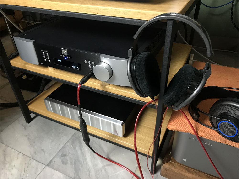 นี่ก็เป็นอีกหนึ่งฟังท์ชั่นที่ผมไม่ได้คาดหวังอะไรไว้มากตั้งแต่แรก แต่หลังจากได้ลองฟังแล้วก็ต้องยอมรับว่า Moon 390 ไม่ได้ให้เอ๊าต์พุตหูฟังมาเล่นๆ เหมือนกัน ผมลองใช้มันขับหูฟังฟูลไซร้สองตัวคือ AKG รุ่น K702/65th ซึ่งมีความต้านทานต่ำ (อิมพีแดนซ์ 62 โอห์ม / ความไว 105dB) กับ Sennheiser รุ่น HD650 ที่มีความต้านทานสูงมาก (อิมพีแดนซ์ 300 โอห์ม / ความไว 103 dB) ปรากฏว่า ภาคขยายหูฟังที่ Moon 390 ให้มาสามารถขับดันหูฟังทั้งสองตัวออกมาได้สบายๆ สามารถซึมซับอรรถรสของดนตรีได้อย่างน่าพอใจ