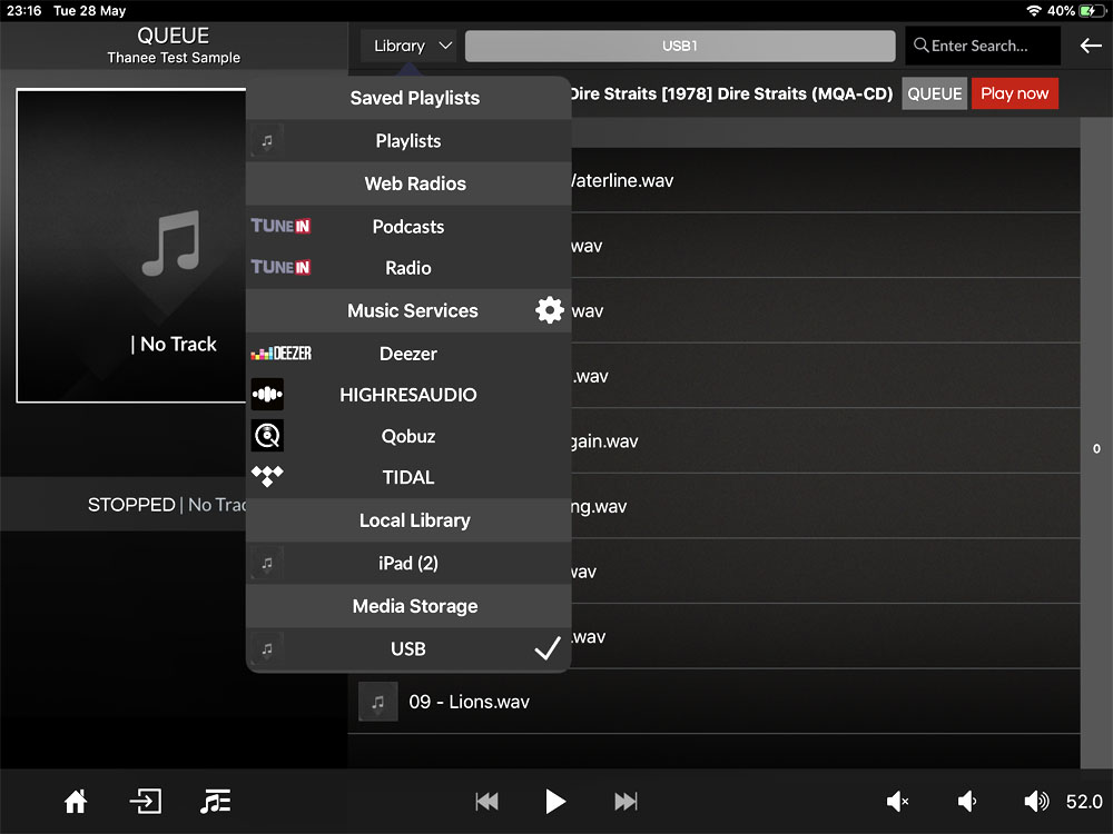 นอกจากใช้ควบคุมการเล่นไฟล์เพลงแล้ว บนแอพฯ ตัวนี้ยังสามารถใช้ควบคุมการทำงานของตัวเครื่อง 390 ได้อีกด้วย อย่างเช่น เลือกอินพุต และเชื่อมต่อกับผู้ให้บริการเช่าเพลงบนอินเตอร์เน็ตรายใหญ่ๆ อย่าง TIDAL และ Deezer รวมทั้งผู้ให้บริการเช่าไฟล์เพลงไฮเรซฯ อย่าง HIGHRES AUDIO และ Qobuz ซึ่งน่าเสียดายว่ายังไม่ได้ให้บริการในไทย