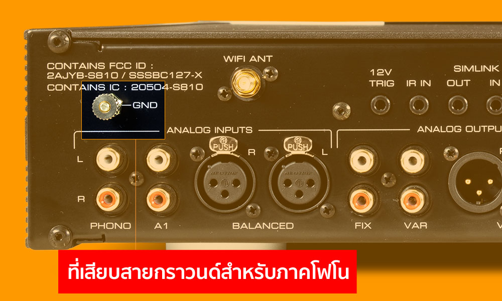 เริ่มที่ช่องอินพุตกันก่อน ซึ่ง 390 มีช่องอะนาลอก อินพุตมาให้ใช้ทั้งหมด 3 ช่อง แยกเป็นอินพุตสำหรับสัญญาณอะนาลอกระดับ Line Level สองช่อง รองรับสัญญาณซิงเกิ้ลเอ็นด์ผ่านขั้วต่อ RCA หนึ่งช่อง กับรองรับสัญญาณบาลานซ์ผ่านขั้วต่อ XLR อีกหนึ่งช่อง ส่วนช่องที่สามเป็นช่องที่มีภาคขยายหัวเข็มของเครื่องเล่นแผ่นเสียง (Phono) ติดตั้งอยู่ด้านใน สามารถรองรับสัญญาณจากหัวเข็ม MM และ MC พร้อมมีพารามิเตอร์ให้ปรับตั้งค่าเพื่อไฟน์จูนให้แม็ทชิ่งกับหัวเข็มได้หลากหลาย โดยปรับได้จากหัวข้อเมนู “Software Setup” ของ 390