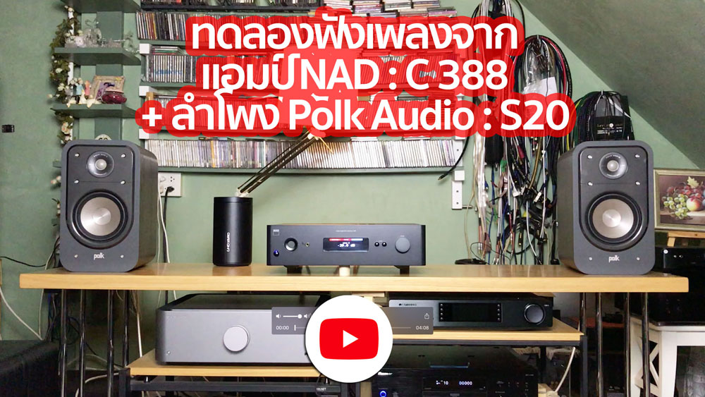 ในการทดสอบครั้งนี้ ผมทดลองจับคู่ C 388 กับลำโพงหลายคู่–หลายระดับราคา เพื่อตรวจสอบความแม็ทชิ่งระหว่างกำลังขับของ C 388 กับโหลดของลำโพงเหล่านั้นว่าจะขับลำโพงคู่ไหนออกมาได้เต็มที่บ้าง โดยเริ่มจากลำโพงที่มีราคาไม่เกินสองหมื่นบาท หรือในช่วง 10,000 – 20,000 บาทต่อคู่ นั่นคือ Polk Audio รุ่น Signature S20