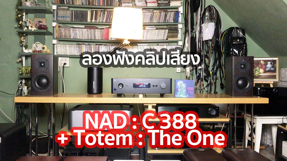หลังจากทดลองฟังเพลงผ่าน C 388 + The One ไปหลายเพลงทั้งช้า–เร็ว ทั้งเพลงไฮเอ็นด์และเพลงตลาดทั่วไป ผมต้องยอมรับว่าทึ่งครับ.. C 388 มันสามารถควบคุม The One ให้ร้องเพลงเพราะๆ ออกมาให้ฟังได้ และยังสามารถปั๊มเสียงที่มีพลังหนักๆ แน่นๆ ออกมาจาก The One ได้ด้วยเมื่อผมลองฟังด้วยเพลงหนักๆ ซึ่งใครที่เคยเป็นเจ้าของและใช้ชีวิตอยู่กับลำโพง Totem Acoustics มาแล้วคงจะรู้ว่า ถ้าแอมป์ไม่ถึงจริงๆ ก็ยากที่จะสามารถ “ปั๊ม” เสียงทุ้มที่หนักและแน่นออกมาจากลำโพงคู่นี้ได้ ยิ่งไปกว่านั้น ถ้าเราพยายามขืนใจด้วยการเร่งวอลลุ่มของแอมป์ให้มากขึ้น แทนที่จะได้เบสออกมาจากลำโพงคู่นี้ กลับกลายเป็นเสียงแหลมที่เจี๊ยวจ๊าวออกมาแทน แต่ที่ผมได้ยินจาก C 388 + The One คู่นี้มันไม่มีอาการเจี๊ยวจ๊าวออกมาให้ได้ยินเลย เนื้อเสียงเนียนละเอียด ไม่มีเกรนหยาบให้ได้ยิน นอกซะจากว่าเพลงนั้นจะบันทึกมาด้อยคุณภาพ เพื่อให้หายข้องใจ ผมลองเปลี่ยนมาใช้อินติเกรตแอมป์ Cambridge Audio รุ่น EDGE A ขับ Totem Acoustics : The One แล้วฟังเทียบกับขับด้วย C 388 โดยใช้ source กับสายสัญญาณและสายลำโพงชุดเดียวกัน ซึ่งผลปรากฏว่า เสียงของ EDGE A + The One ดีกว่า C 388 + The One อยู่พอสมควร สังเกตได้จากความหนา แน่น และอิ่มของมวลเสียง กับความอบอวลของบรรยากาศรายรอบที่ทำให้รู้สึกว่า ซาวนด์สเตจที่ได้จาก EDGE A + The One มันแผ่ขยาย energy ออกมาได้กว้างขวางกว่า น้ำหนักกระแทกของหัวเสียงหรืออิมแพ็คที่นักดนตรีกระทำกับเครื่องดนตรีที่ได้ยินจาก EDGE A + The One ก็ออกมาเข้มข้นกว่า