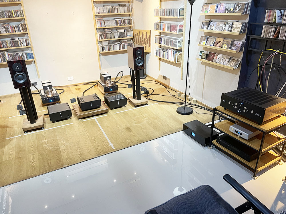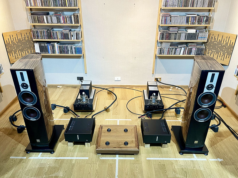 คุณโจ้ กับคุณธง จากสำนัก Sound Box ยกเพาเวอร์แอมป์รุ่น Transmitter HPS มาพร้อมกับปรีแอมป์รุ่น Magnetic เพื่อให้ผมทดลองฟังพร้อมกัน ซึ่งเป็นคู่ปรี+เพาเวอร์ฯ หลอดที่เหมาะสมกันมากเพราะออกแบบมาจากแบรนด์เดียวกัน