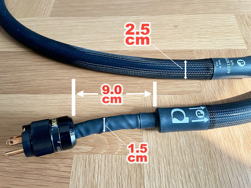 วัสดุตัวนำที่ใช้ในสายไฟเอซี PAD ตัวนี้เป็นทองแดง OFC ขนาด 12 AWG ซึ่งผ่านขั้นตอนปรับเรียงโมเลกุลด้วยกระบวนการ Triple (3x) Cryomag© มาแล้ว โครงสร้างภายในมีการชีลด์ป้องกันคลื่นรบกวนและลดเรโซแนนซ์มากถึง 98% คือเกือบทั้งเส้น เหลือแค่ส่วนปลายทั้งสองข้างที่หุ้มด้วยท่อหดบางๆ เพื่อให้มีความยืดหยุ่นในขณะใช้งานที่สามารถหักงอได้มากขึ้น