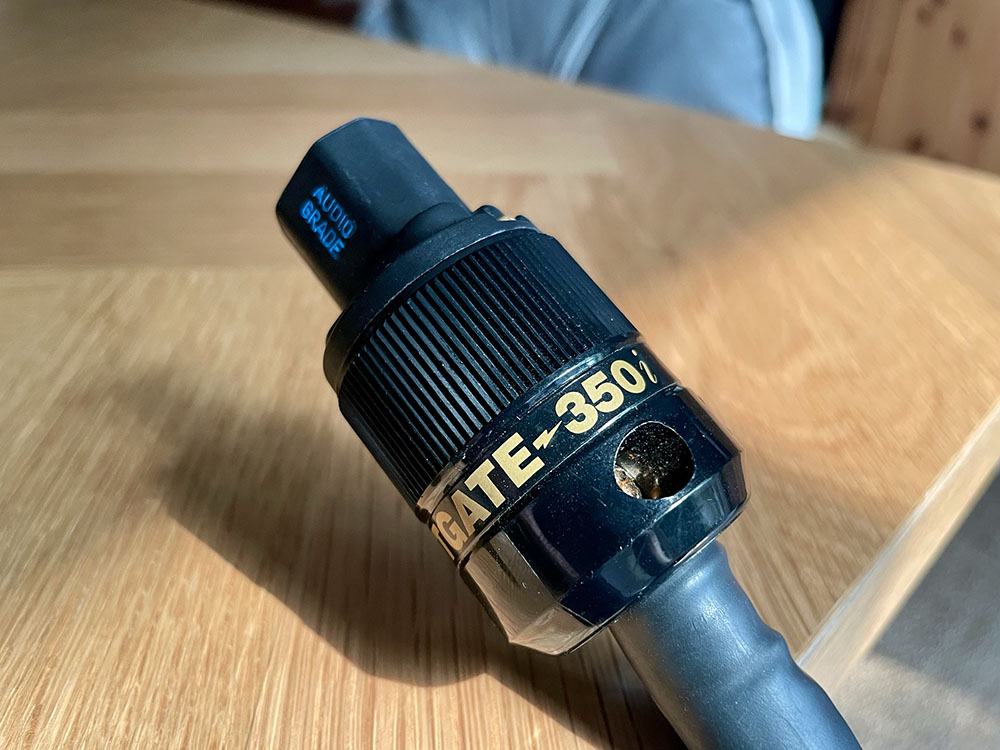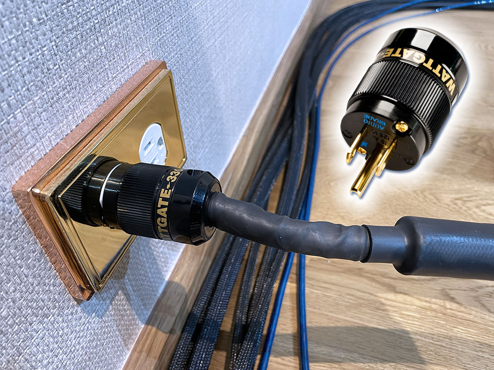 ปลั๊กสามขาตัวผู้กับตัวเมียซึ่งถูกใช้เป็นหัวปลั๊ก–ท้ายปลั๊ก (plug & IECC) ของสายไฟเอซีเส้นนี้เป็นของแบรนด์ Wattgate รุ่น 330i ขาทอง + รุ่น 350i ขาทอง ซึ่งเป็นหัวปลั๊ก/ท้ายปลั๊กที่นักเล่นฯ ในกลุ่ม DIY นิยมนำมาใช้กันมาก เนื้องานดูดี ขาสัมผัสชุบทองเหลืองอร่าม ดูน่าเชื่อถือ..