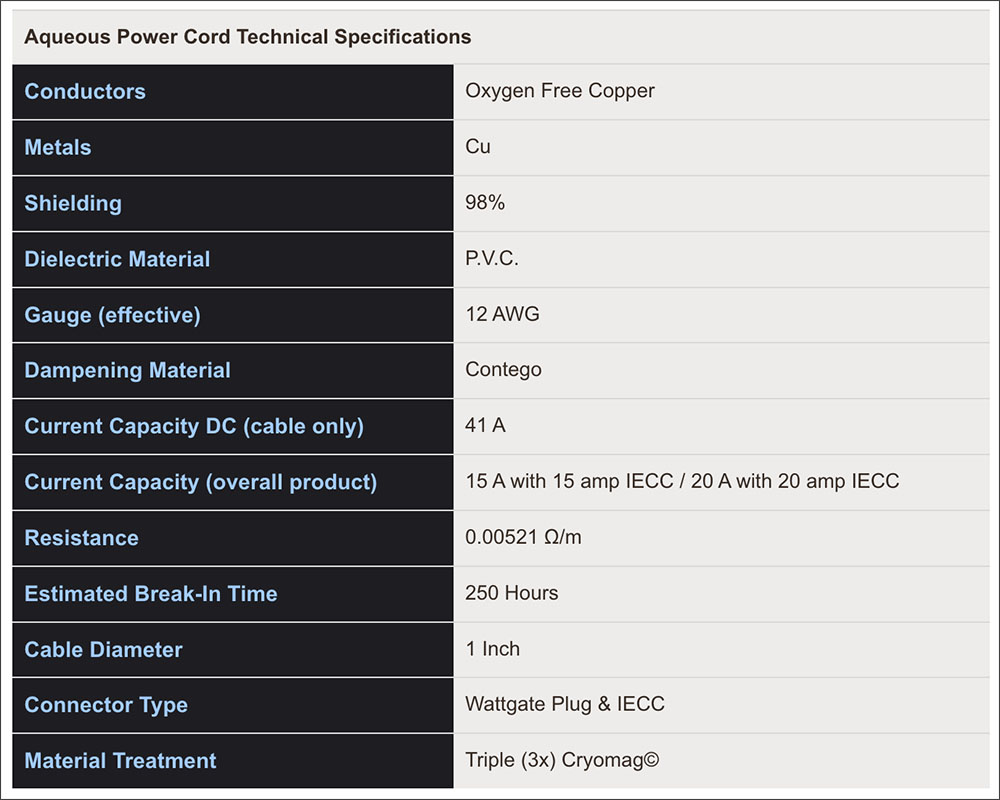 ซึ่งประเด็นที่น่าสนใจสำหรับการปรับปรุงมาถึงระดับ Diamond Revision ก็คือเรื่องของ “คุณภาพเสียง” ที่ได้มาจากการปรังปรุงโลหะตัวนำ บวกกับกระบวนการแช่แข็งแบบพิเศษที่เรียกว่า 3X Cryo ซึ่งช่วยเพิ่มประสิทธิภาพในการส่งผ่านสัญญาณและเพิ่มประสิทธิภาพความเป็นตัวนำของโลหะทองแดง, เงิน และทอง ที่ใช้เป็นส่วนประกอบในการผลิตสายไฟเอซี, สายสัญญาณ, สายลำโพง และสายเชื่อมต่อสัญญาณอื่นๆ ด้วย จากข้อมูลที่ได้รับทราบมาถึงตรงนี้ ทำให้รู้สึกอยากฟังเสียงของสายไฟเอซี Aqueous ตัวนี้ซะแล้ว..!!!