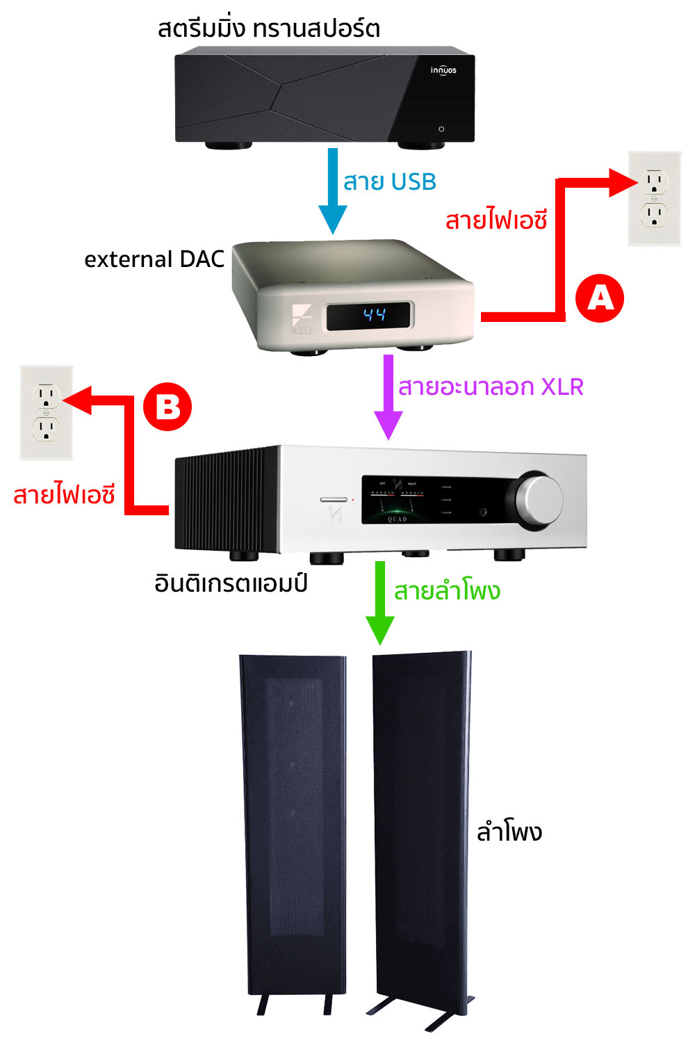 จะต้องมีคนแย้งแน่ๆ ถ้าจะพูดสรุปว่า สายไฟเอซีสามารถทำให้แอมปลิฟายมีกำลังสูงขึ้นได้ เพราะด้วยหลักการทำงานแล้ว “ทรานซิสเตอร์” ที่อยู่ในเพาเวอร์แอมป์ต่างหากที่ทำหน้าที่ในการขยายสัญญาณโดยตรง แต่ด้วยข้อเท็จจริงที่ว่า การทำงานของทรานซิสเตอร์ก็ต้องอาศัย “กระแสไฟฟ้า” ถ้าไม่มี “กระแสไฟฟ้า” ทรานซิสเตอร์ก็ทำงานไม่ได้ ด้วยเหตุนี้ คุณภาพความดี–เลวของ “กระแสไฟฟ้า” ก็น่าจะมีส่วนเกี่ยวข้องกับ “ประสิทธิภาพ” ในการขยายสัญญาณของทรานซิสเตอร์ด้วย ส่วนที่ว่า “กระแสไฟฟ้า” ที่เดินทางไปถึงเครื่องเสียงแต่ละชิ้นจะมี “คุณภาพความดี–เลว” มาก–น้อยประการใดก็ขึ้นอยู่กับว่า ก่อนจะมาถึงเครื่องเสียง กระแสไฟฟ้านั้นมันเดินทางผ่านอะไรมาบ้าง.? ถ้าฝ่า noise และ resonance อย่างโชกโชนมาตลอดเทาง กระแสไฟที่เดินทางมาถึงเครื่องเสียงก็อาจจะอยู่ในสภาพที่ไม่สมบูรณ์ ส่งผลให้วงจรอิเล็กทรอนิคส์ที่อยู่ในอุปกรณ์เครื่องเสียงทำงานไม่สมบูรณ์ตามไปด้วย