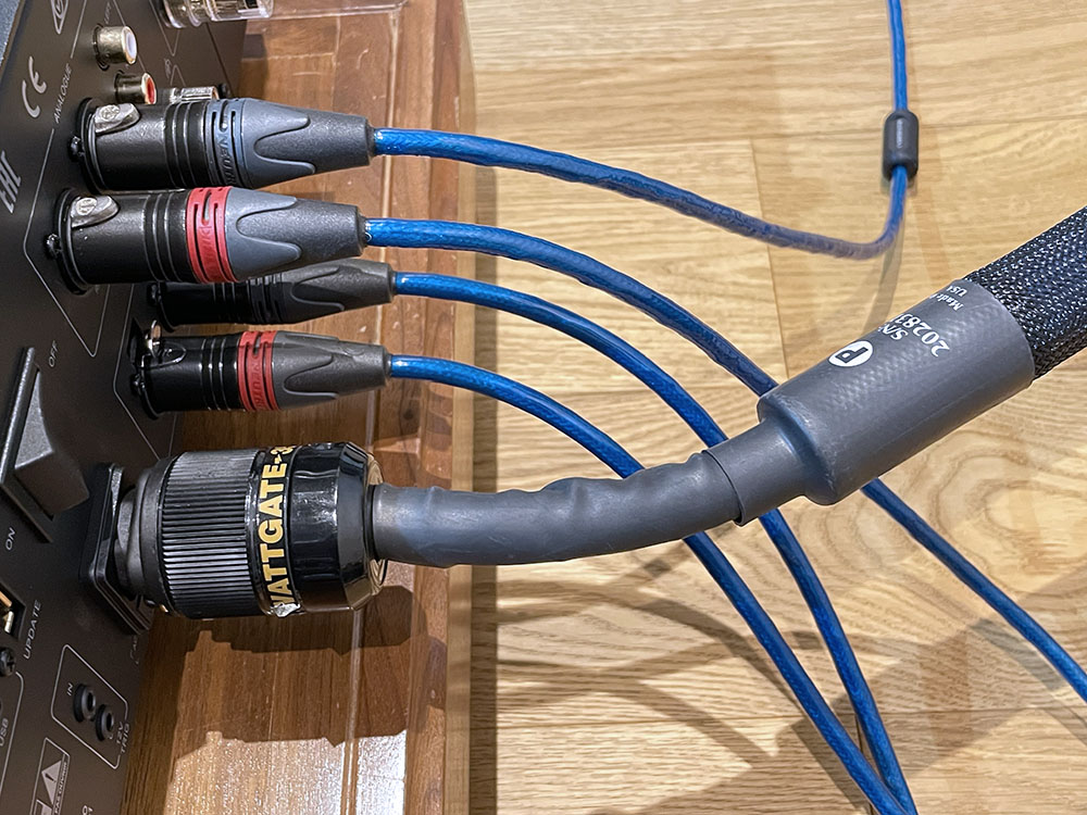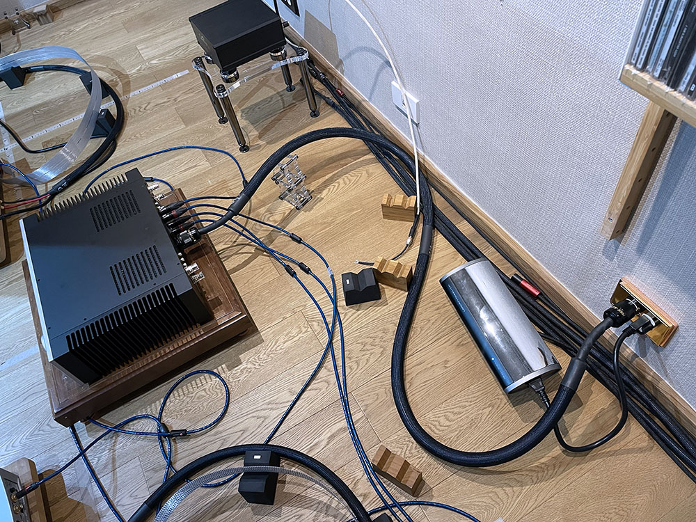 หลังจากนั้น ผมก็ย้ายสายไฟเอซี Aqueous (Gen.6 Diamond Revision) มาทดลองฟังเทียบกับสายแถมตรงจุด B ซึ่งใช้กับอินติเกรตแอมป์ Platina โดยที่จุด A ที่ใช้เชื่อมต่อกับ DAC ผมเอาสายแถมต่อไว้เพื่อไม่ให้โทนเสียงของสายไฟเอซีตัวอื่นๆ เข้ามาผสมปนเป ซึ่งจะทำให้แยกโทนเสียงของสายไฟ Aqueous (Gen.6 Diamond Revision) ออกมาได้ยาก..