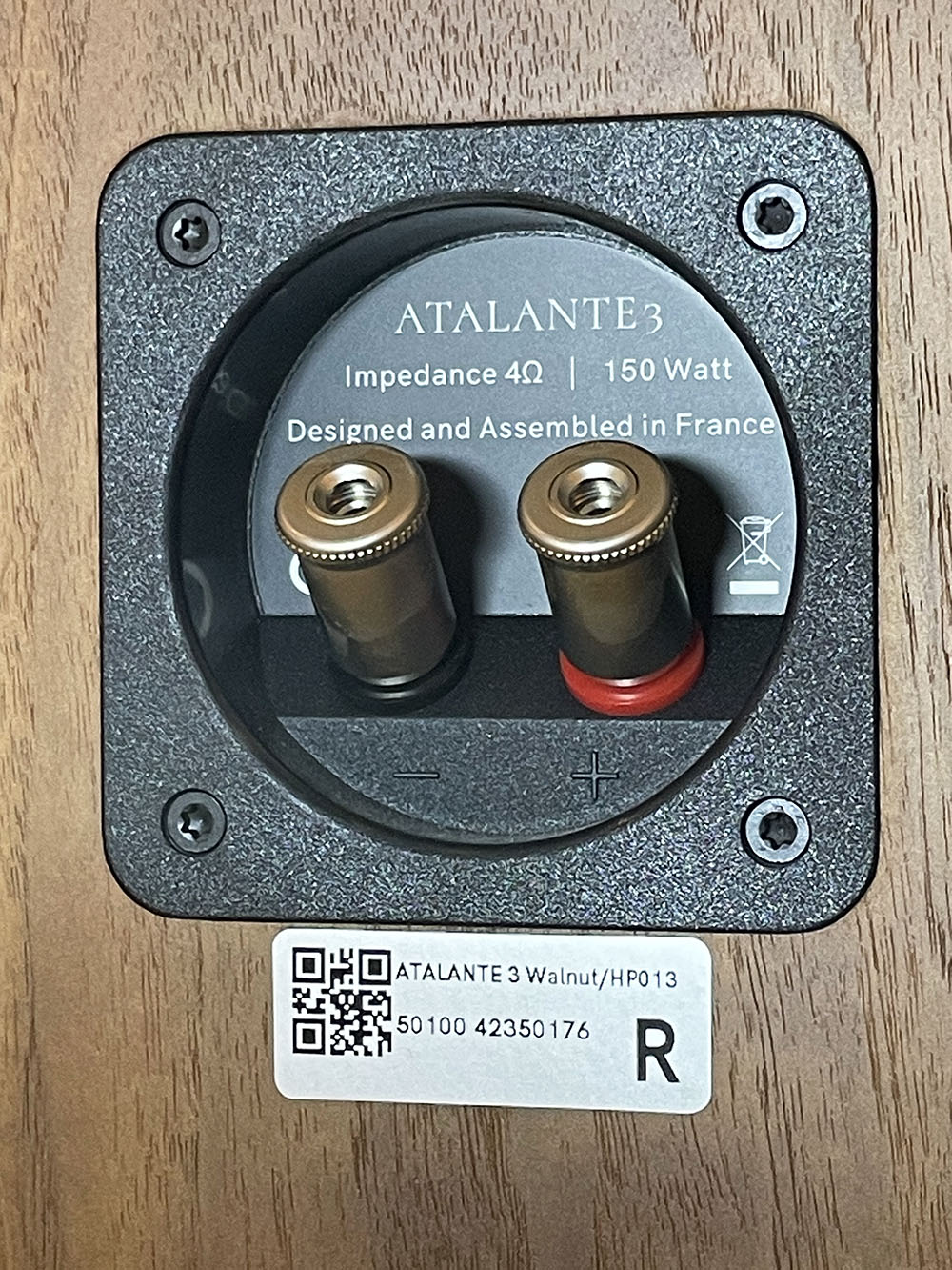 Atalante 3 เป็นลำโพงตู้เปิด โดยซ่อนท่อระบายอากาศขนาดใหญ่ไว้ที่ด้านบนของแผงหลัง และติดตั้งขั้วต่อสายลำโพงไว้ที่ส่วนล่างของแผงหลัง เป็นขั้วต่อสายลำโพงแบบซิงเกิ้ลไวร์ ตัวขั้วต่อเป็นโลหะ เนื้องานดูดีมาก