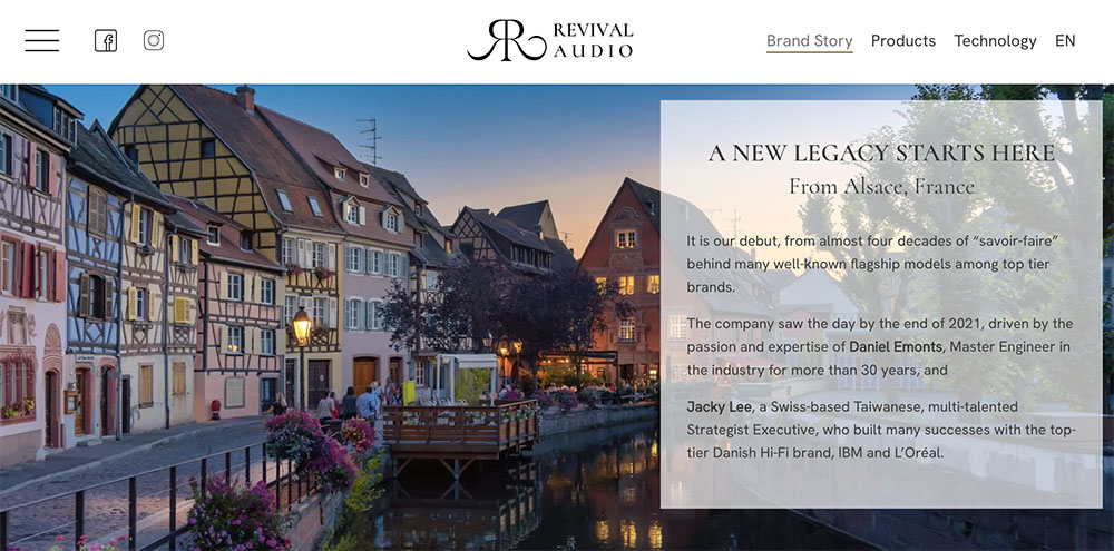 แบรนด์ Revival Audio เป็นผู้ผลิตลำโพงที่มีฐานพำนักอยู่ในประเทศฝรั่งเศส ตั้งรกรากอยู่ในเขตการปกครอง Alsace ทางทิศตะวันออกเฉียงเหนือของประเทศฝรั่งเศส มีพรหมแดนชิดกับเยอรมันและสวิสเซอร์แลนด์ เป็นพื้นที่ที่มีธรรมชาติสวยงามมาก ทั้งทิวทัศน์และบ้านเรือน เป็นเขตพื้นที่ที่มีศิลปะฝังรากลึกลงไปในทุกอณู ผมชอบฉากเปิดของเว็บไซต์ของพวกเขามาก เห็นภาพของบ้านเรือนสไตล์บาวาเรี่ยนแล้วทำให้จินตนาการไปถึงเทพนิยายโบราณ ให้ความรู้สึกที่สัมผัสได้ถึงรสนิยมของเจ้าของแบรนด์ที่มีกลิ่นอายของศิลปะขจรกระจายออกมาฟุ้งไปหมด