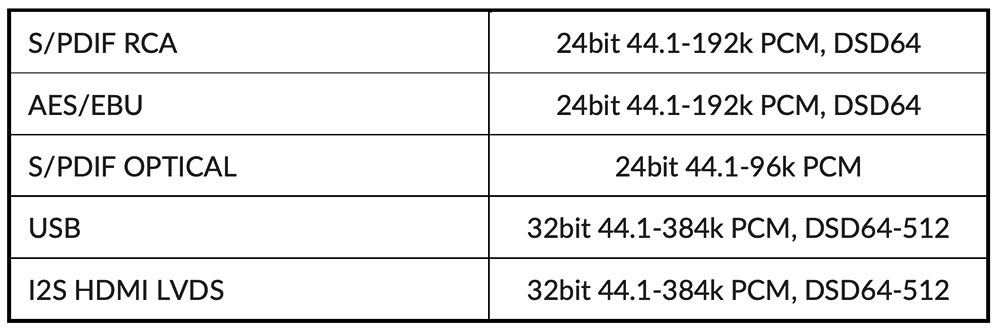 H = ขั้วต่อ ดิจิตัล–อินพุต Optical, AES/EBU, Coaxial (SPDIF), I2S และ USB