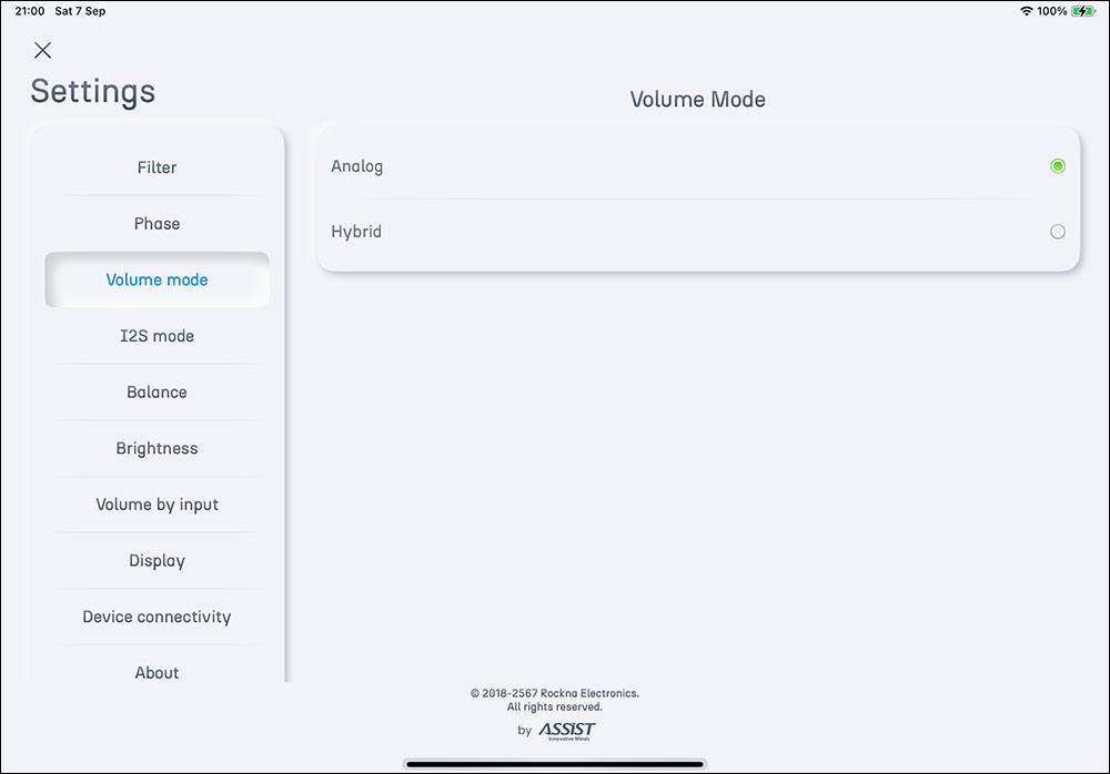 คุณต้องเข้าไปเลือกรูปแบบของสัญญาณขาออกของ WL DAC ที่หัวข้อ ‘Volume Mode’ ในเมนูเครื่อง (เลือกผ่านแอพลิเคชั่นได้) ซึ่งในนั้นมีให้เลือกอยู่ 2 รูปแบบ คือ Analog กับ Hybrid โดยที่ตัว Hybrid นั้นเป็นวอลลุ่มที่ผสมระหว่างดิจิตัลวอลลุ่มกับอะนาลอกวอลลุ่มเข้าด้วยกัน ผมทดลองฟังเทียบกันแล้ว ตัว Hybrid ให้เสียงสดกว่า เสียงแหลมจะโดดออกมามากกว่าแต่ก็ไม่ได้มากมาย ซึ่งบางคนอาจจะชอบถ้ารู้สึกว่าบุคลิกเสียงของแอมป์+ลำโพงค่อนข้างนุ่มเนียนมากไป แต่สำหรับผม ลองฟังแล้วชอบเสียงของปรีอะนาลอกมากกว่า ซึ่งตอนใช้ภาคปรีฯ ในตัว Wavelight DAC แทนที่ปรีแอมป์ภายนอก *** อย่าลืมหรี่วอลลุ่มของ WL DAC ลงต่ำๆ ไว้ก่อน (ลด/เพิ่มวอลลุ่มจากหน้าแอพฯ ได้เลย)