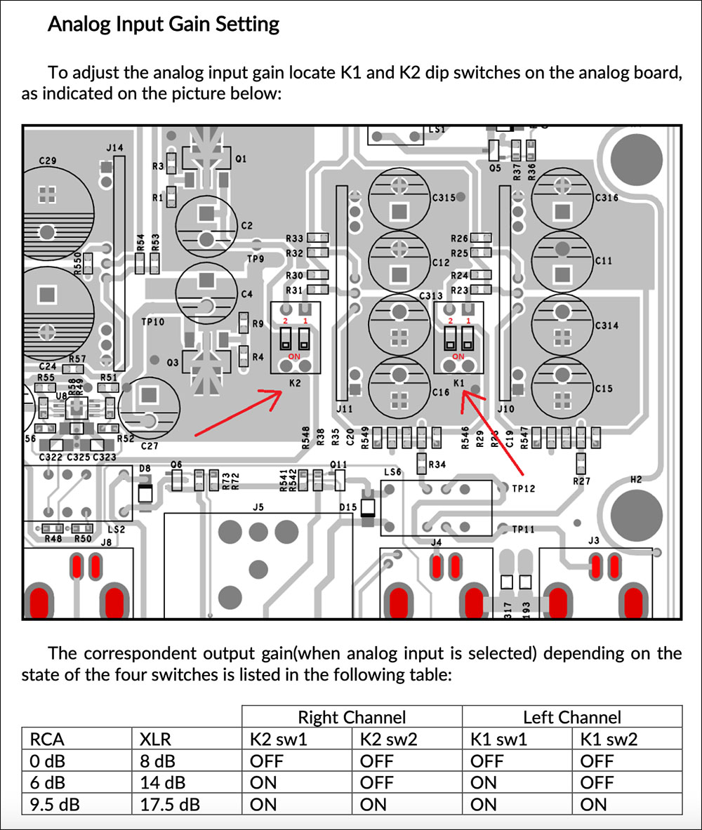 ถ้าซิสเต็มของคุณมีเครื่องเล่นแผ่นเสียงเป็นแหล่งต้นทางอีกอย่างก็สามารถใช้อินพุต Analog ของ WL DAC รองรับสัญญาณอะนาลอก เอ๊าต์จากภาคโฟโนของคุณเข้ามาใช้งานผ่านภาคปรีฯ ของ WL DAC ได้เลย ไม่ต้องกังวลเรื่องเกนแม็ทชิ่ง เพราะในตัว WL DAC มีฟังท์ชั่นปรับเกนของช่อง Analog Input ไว้ให้คุณแม็ทชิ่งเกนด้วย ซึ่งมีอ๊อปชั่นให้ปรับตั้งถึง 3 ระดับ คือ 0, 6 และ 9.5dB สำหรับเอ๊าต์พุต RCA (ความต้านทาน 50 โอห์ม) แต่ถ้าคุณใช้เอ๊าต์พุตทางช่อง XLR (ความต้านทาน 110 โอห์ม) ค่าที่ปรับจะเป็น 8, 14 และ 17.5dB