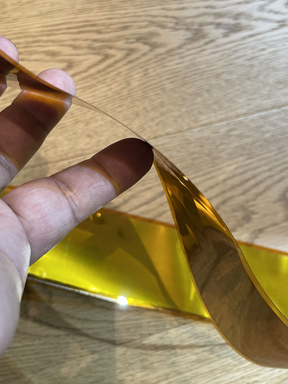 ยืนยันความ บางเฉียบของสาย.. เอ่อ.! แผ่น เฮ้ย.! ลำบาก เรียกสายเหมือนเดิมแล้วกัน ของสายลำโพงที่มีรูปร่างแบนบางเหมือนริบบ้อนยี่ห้อนี้ เล็งด้วยสายตาผมว่ามันบางซะยิ่งกว่าเส้นผมของเราอีก.! นี่ขนาดมีฉนวน Polyimides (PI) หุ้มอยู่โดยรอบด้วยนะ