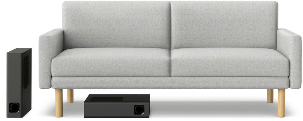 วางลำโพงซับวูฟเฟอร์ไว้ใต้โซฟาแบบนี้.. เหมือน shaker ที่คอยสั่นสะเทือนให้ความรู้สึกเหมือนอยู่ในเหตุการณ์