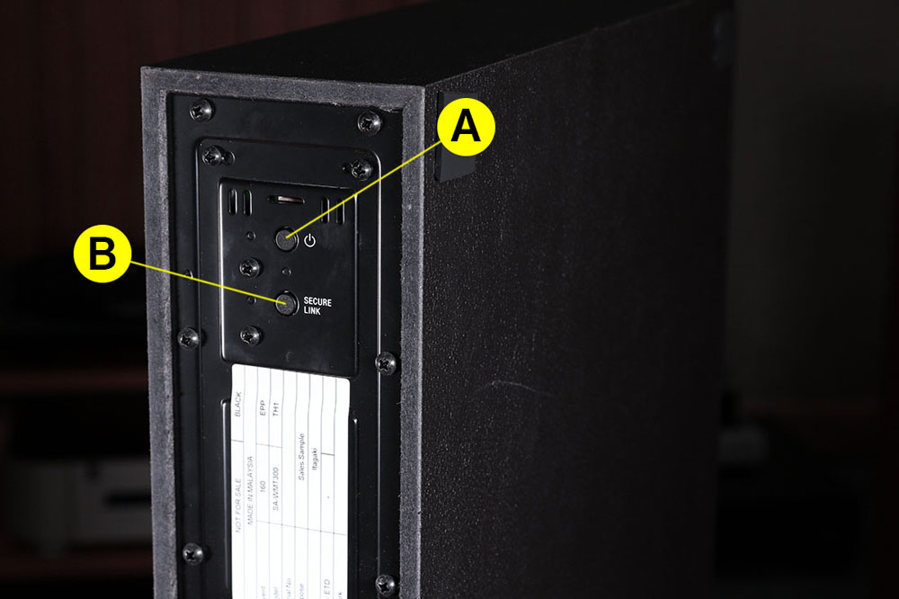B : ปุ่ม Secure Link ใช้ในกรณีที่มีอุปรณ์ไร้สาย Bluetooth หลายชิ้นเปิดใช้งานอยู่ในบริเวณเดียวกัน ฟังท์ชั่นนี้จะช่วยไม่ให้เกิดปัญหาการเชื่อมต่อระหว่างกัน (วิธีใช้งานอยู่ในคู่มือหน้า 23)