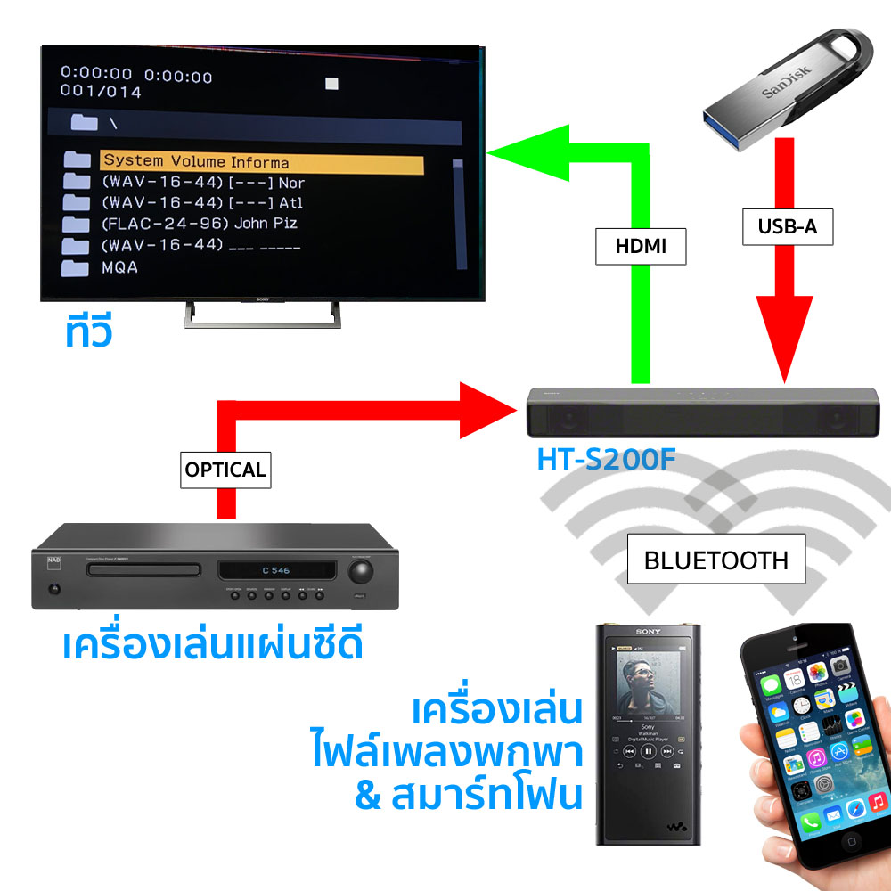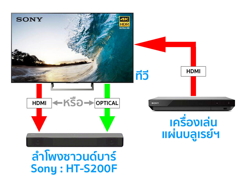วิธีเชื่อมต่อ HT-S200F เข้ากับทีวี เพื่อใช้ขยายเสียงจากทีวี