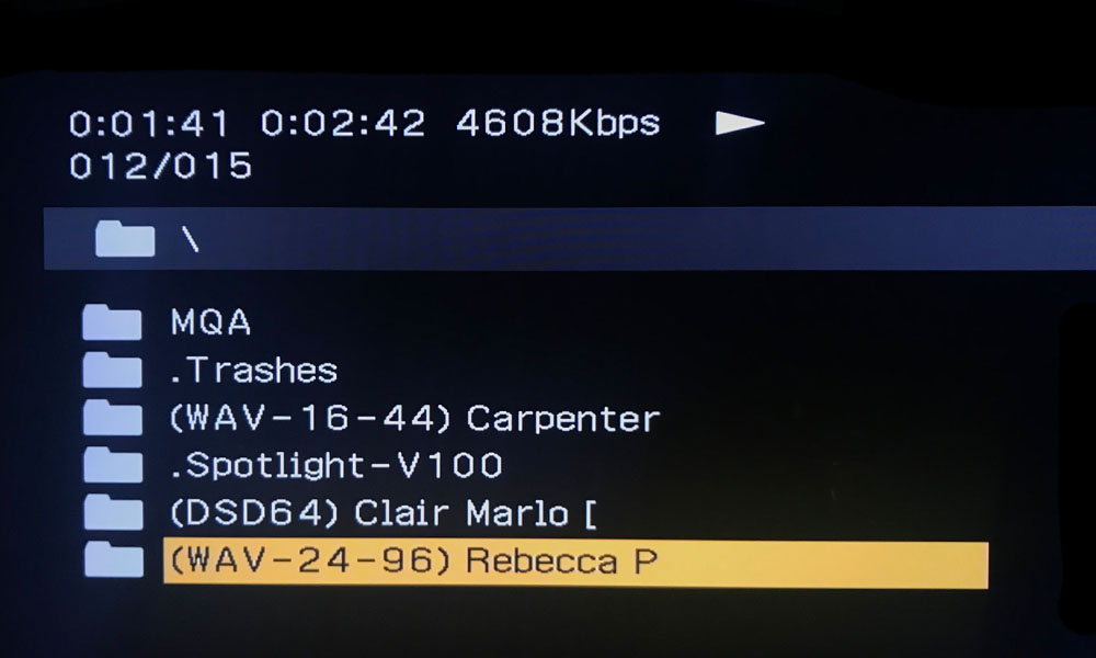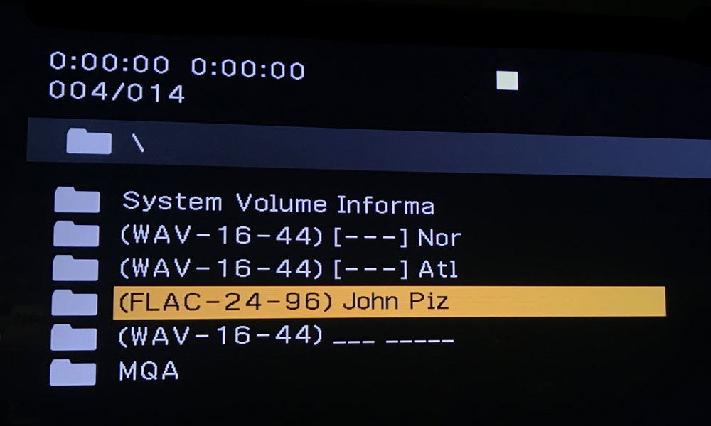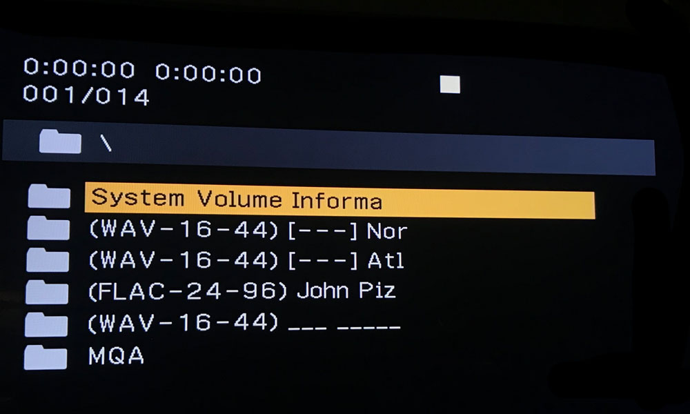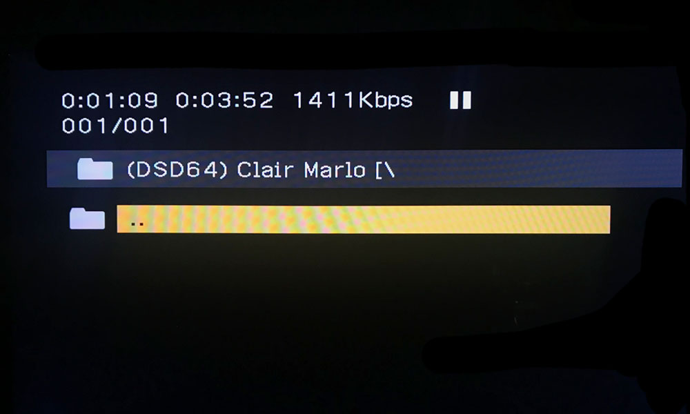 เมื่อผมเลือกไปที่โฟลเดอร์ที่เก็บไฟล์เพลงนามสกุล DSF ที่ห่อหุ้มสัญญาณ DSD64 อยู่ข้างใน แล้วกด ENTER บนรีโมทของ S200F ปรากฏว่า มันไม่โชว์ไฟล์เพลงเหล่านั้นขึ้นมาบนจอ เป็นการยืนยันให้ทราบว่า S200F ไม่รองรับการเล่นสัญญาณ DSD