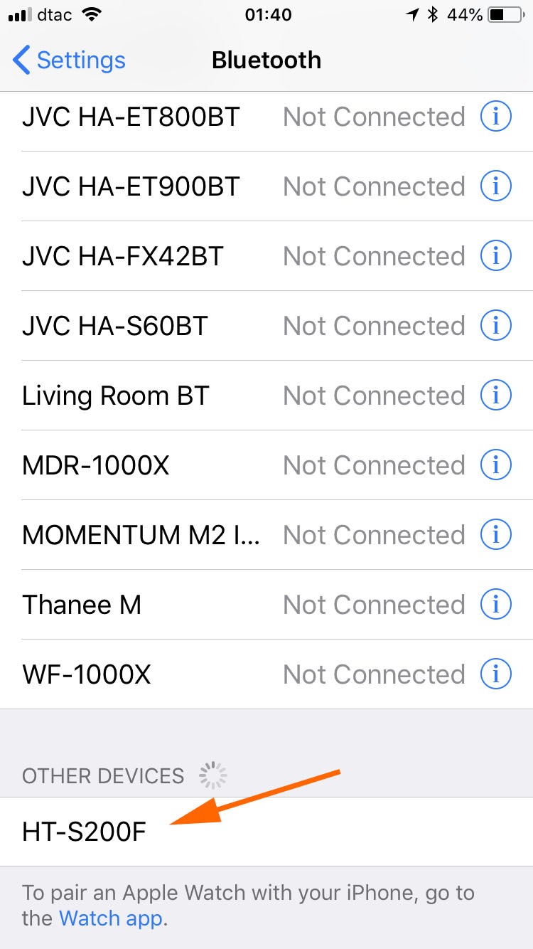 ผมทดลองเล่นเพลงจากแอพ Spotify บน iPhone 7 แล้วส่งสัญญาณไปที่ S200F ผ่าน Bluetooth