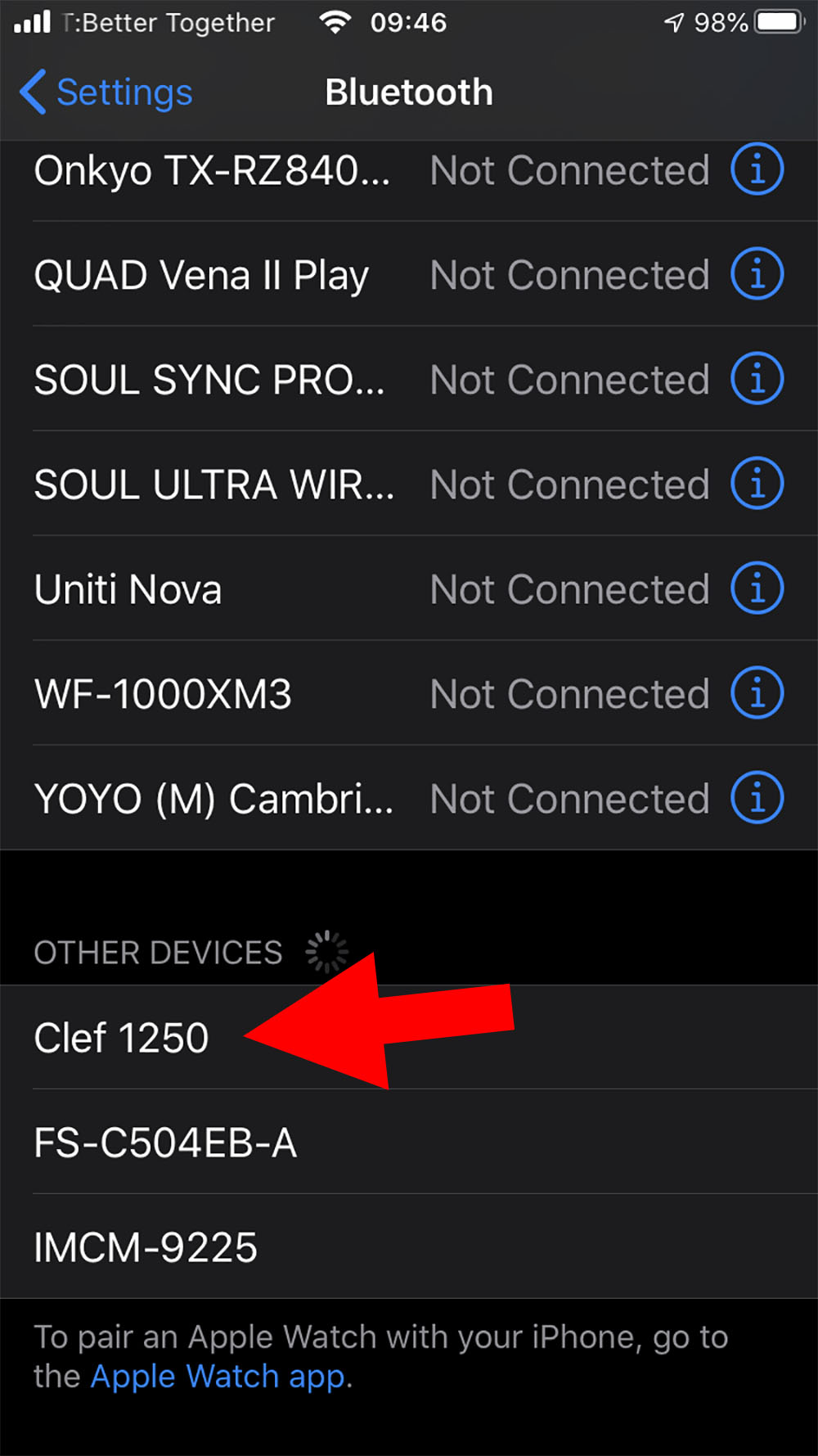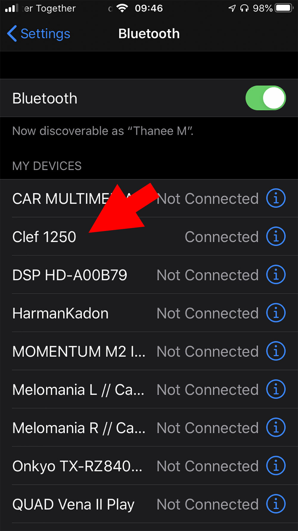 ภาพด้านบนนี้ผมทดลองเชื่อมต่อ Bluetooth จาก iPhone 7 ของผมไปที่ตัวแอมป์ Clef Audio 1250 ปรากฏว่ามันเชื่อมต่อได้ง่ายมาก แค่เปิดแอมป์แล้วสับสวิทช์โยกอินพุตไปที่ BT จากนั้นก็เปิดฟังท์ชั่น Bluetooth บน iPhone 7 ก็จะมีชื่อของ “Clef 1250” โผล่ขึ้นมาที่ other devices เราก็เอานิ้วจิ้มลงไปที่ชื่อ Clef 1250 แค่นี้ก็เสร็จแล้ว หลังจากนั้นผมก็ได้ลองใช้ iPad mini2 เชื่อมต่อดูก็ทำได้ง่ายเหมือนกัน