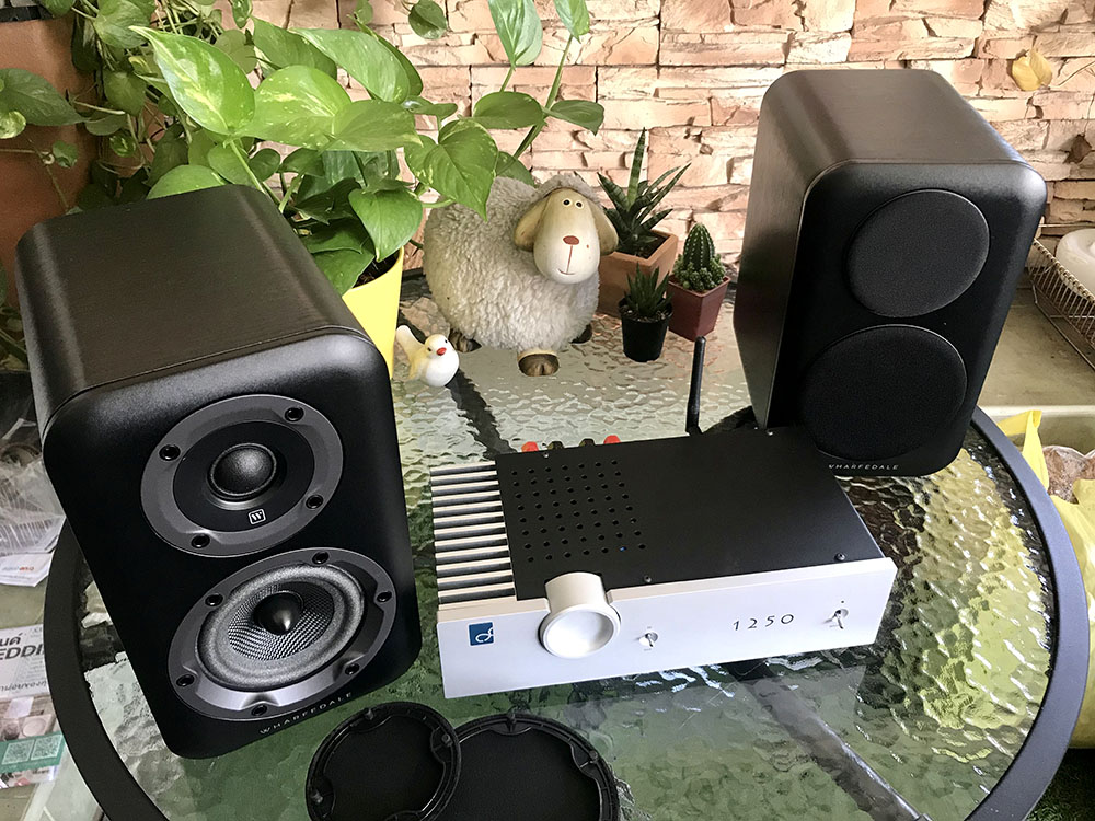 ด้วยสเปคฯ ของแอมป์ลักษณะข้างต้น บวกกับงบประมาณที่จำกัด หักลบค่าแอมป์ไปแล้ว จึงเหลือของลำโพงไว้ไม่เกินหนึ่งหมื่น และขนาดของลำโพงก็ควรจะดูสมดุลกับขนาดของแอมป์ด้วย ทางเลือกของลำโพงจึงบีบลงมาที่ลำโพงสองทางวางหิ้งขนาดเล็ก เมื่อได้ข้อสรุปแล้ว ผมก็เดินทางไปที่ร้านไฮไฟ ทาวเวอร์เพื่อค้นหาลำโพงที่เหมาะสมกับสเปคฯ ที่ต้องการ (ที่นั่นมีลำโพงให้เลือกเยอะ!) ผมได้มา 2 คู่คือ Wharfedale รุ่น D310 กับ Mission รุ่น LX-1 ซึ่งมีขนาดตัวตู้อยู่ในพิกัดที่ต้องการ และราคาก็ไม่เกินงบด้วย