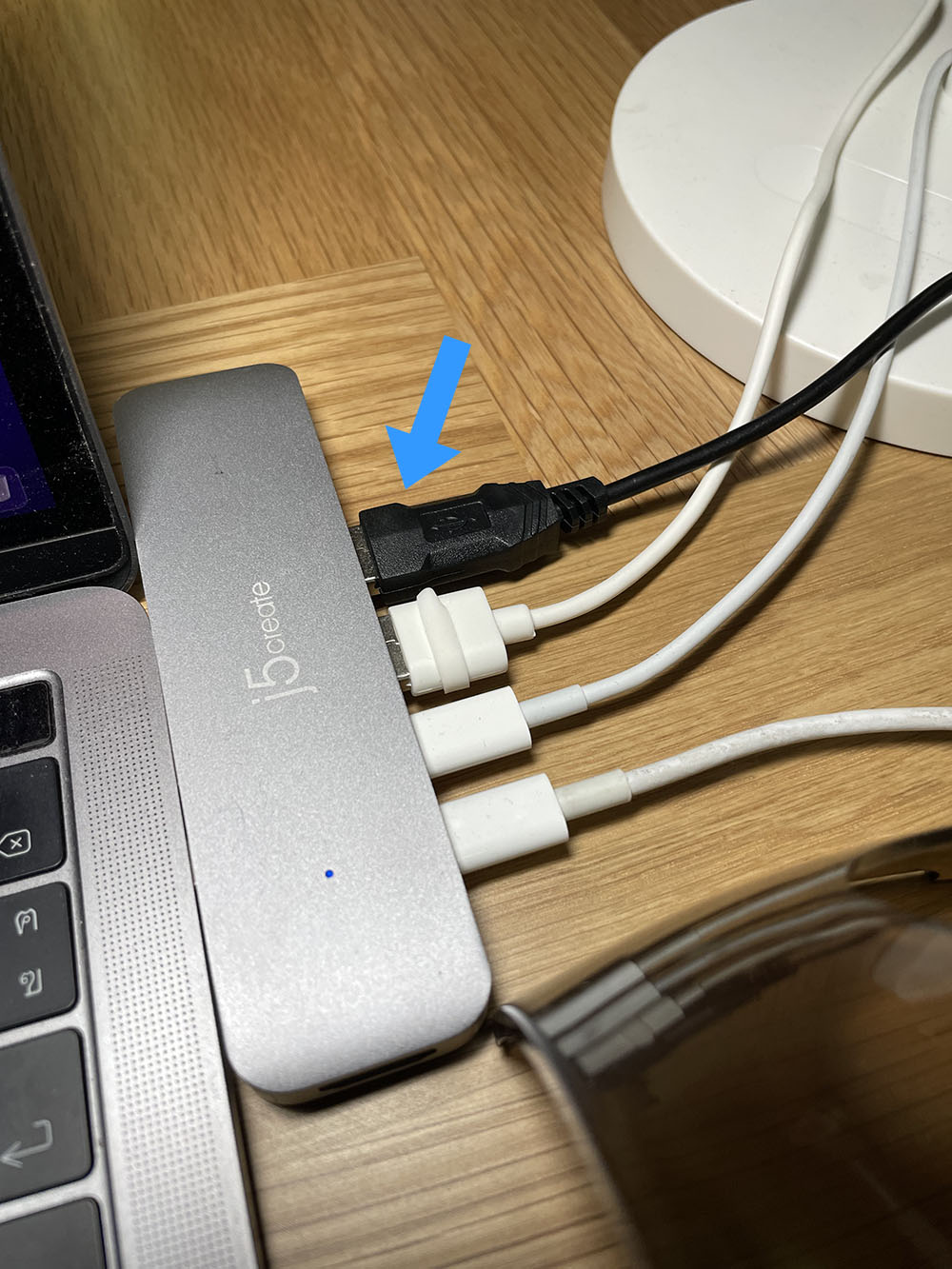 ในกล่องให้สาย USB Type A > Type C ที่ใช้ชาร์จไฟมาหนึ่งเส้น ส่วนช่องเสียบ Type C ติดตั้งอยู่ที่ฐานด้านข้างตัวตัวลำโพง (ศรชี้) ตอนเสียบชาร์จไฟจะมีไฟ LED สีแดงดวงเล็กๆ (ศรชี้) สว่างขึ้นมาให้รู้ เมื่อชาร์จเต็มไฟดวงนี้จะดับลง สามารถใช้งานได้ต่อเนื่อง 12 ชั่วโมง ต่อการชาร์จเต็มหนึ่งครั้ง