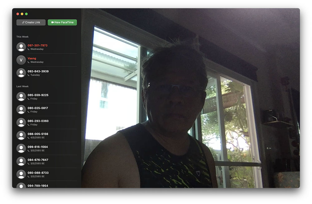ผมทดลองใช้แอพ FaceTime บน MacBook Pro โดยเทียบภาพและเสียงของกล้องกับไมค์บนตัวคอมฯ (ภาพบน) กับภาพและเสียงที่ได้จาก Sync Webcam with Mic (ภาพล่าง) ที่ผมใช้แทนกล้องและไมโครโฟนของคอมพิวเตอร์ จะเห็นว่าภาพจากกล้องเว็บแคมของ SyncLabCo ดีกว่ามาก ภาพจากกล้องบนตัวคอมฯ เจอย้อนสภาพแสงหน้าดำ ในขณะที่กล้องเว็บแคมของ SyncLabCo สู้แสงได้มากกว่า แม้จะถ่ายย้อนแสงแบบเดียวกัน แต่ผลลัพธ์ออกมาดีกว่ามาก ทั้งในแง่ความคมชัดของภาพ สีสัน และรายละเอียด นอกจากนั้น เมื่อใช้กล้องเว็บแคมของ SyncLabCo แทนกล้องบนตัวคอมฯ ทำให้ผมสามารถปรับตั้งหามุมกล้องที่ชอบได้อิสระกว่าด้วย