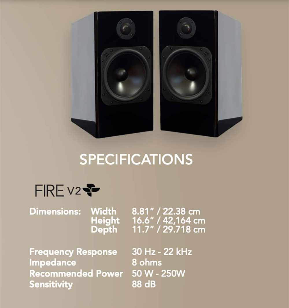 Element ‘FIRE’ v2 เป็นลำโพงตู้เปิด มีท่อระบายอากาศขนาดเส้นผ่าศูนย์กลางประมาณ 2 นิ้วอยู่ที่แผงด้านหลัง ตำแหน่งใกล้กับด้านหลังของทวีตเตอร์ เมื่อวางอยู่บนขาตั้งของ Custom Design ความสูงของลำโพงวัดจากพื้นขึ้นมาถึงส่วนบนสุดของแผงหน้าอยู่ที่ 105.5 ซ.ม. ด้วยน้ำหนักตัวไม่ถึง 15 กิโลกรัม การยกขยับเพื่อปรับจูนเสียงจึงทำได้ไม่ยากด้วยตัวคนเดียว หลังจากทดลองฟัง ณ จุดเริ่มต้นตามสูตรของผมคือ ระยะห่างซ้าย–ขวาอยู่ที่ 180 ซ.ม. ห่างผนังหลังเท่ากับ 178.25 ซ.ม. (ความลึกของห้องหารด้วย 3) ปรากฏว่าเสียงโดยรวมก็ออกมาน่าฟังแล้ว หลังจากทดลองฟัง ณ ตำแหน่งนั้นมาเรื่อยๆ จนพ้นระยะเวลา 100 ชั่วโมงแล้ว ผมจึงเริ่มไฟน์จูนด้วยการแม็ทชิ่งและขยับตำแหน่งลำโพง จนมาได้จุดลงตัวอยู่ที่ระยะห่างซ้าย–ขวาอยู่ที่ 170 ซ.ม. และห่างผนังหลังเท่ากับ 173 ซ.ม. โดยที่ลำโพงทั้งสองข้างวางหน้าตรง ไม่โทอิน สรุปคือ ลำโพงคู่นี้เซ็ตอัพตำแหน่งไม่ยาก ลักษณะเหมือนลำโพงทั่วไป การเปลี่ยนแปลงของเสียงค่อนข้างไวกับการปรับเปลี่ยนระยะพอสมควร