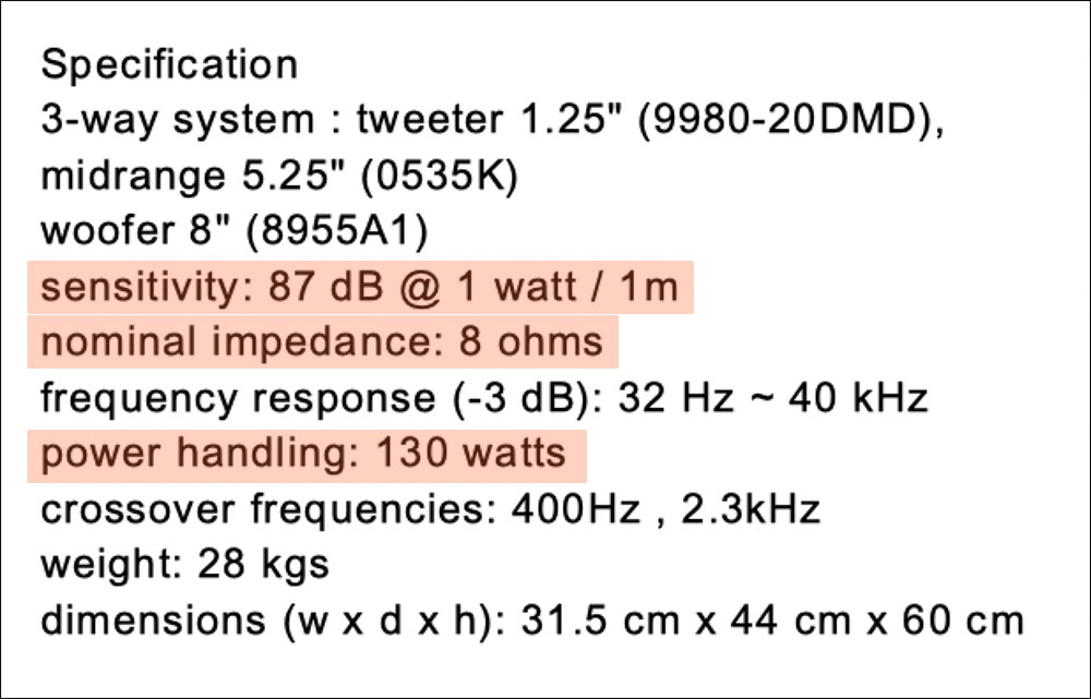 ลำโพงคู่นี้มีย่านความถี่ตอบสนองที่ค่อนข้างกว้างเมื่อเทียบกับขนาดตัวของมัน ด้านทุ้มลงไปได้ถึง 32Hz ส่วนความถี่สูงพุ่งขึ้นไปได้สูงสุดถึง 40kHz ซึ่งความถี่ทั้งหมดนั้นถูกส่งผ่านออกมาจากไดเวอร์ที่ติดตั้งอยู่บนตัวตู้ทั้งหมด 3 ตัวต่อข้าง ประกอบด้วยทวีตเตอร์, มิดเร้นจ์ และวูฟเฟอร์ อย่างละดอก
