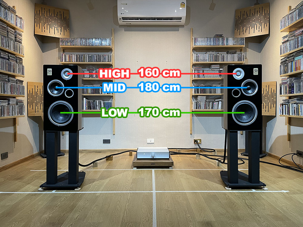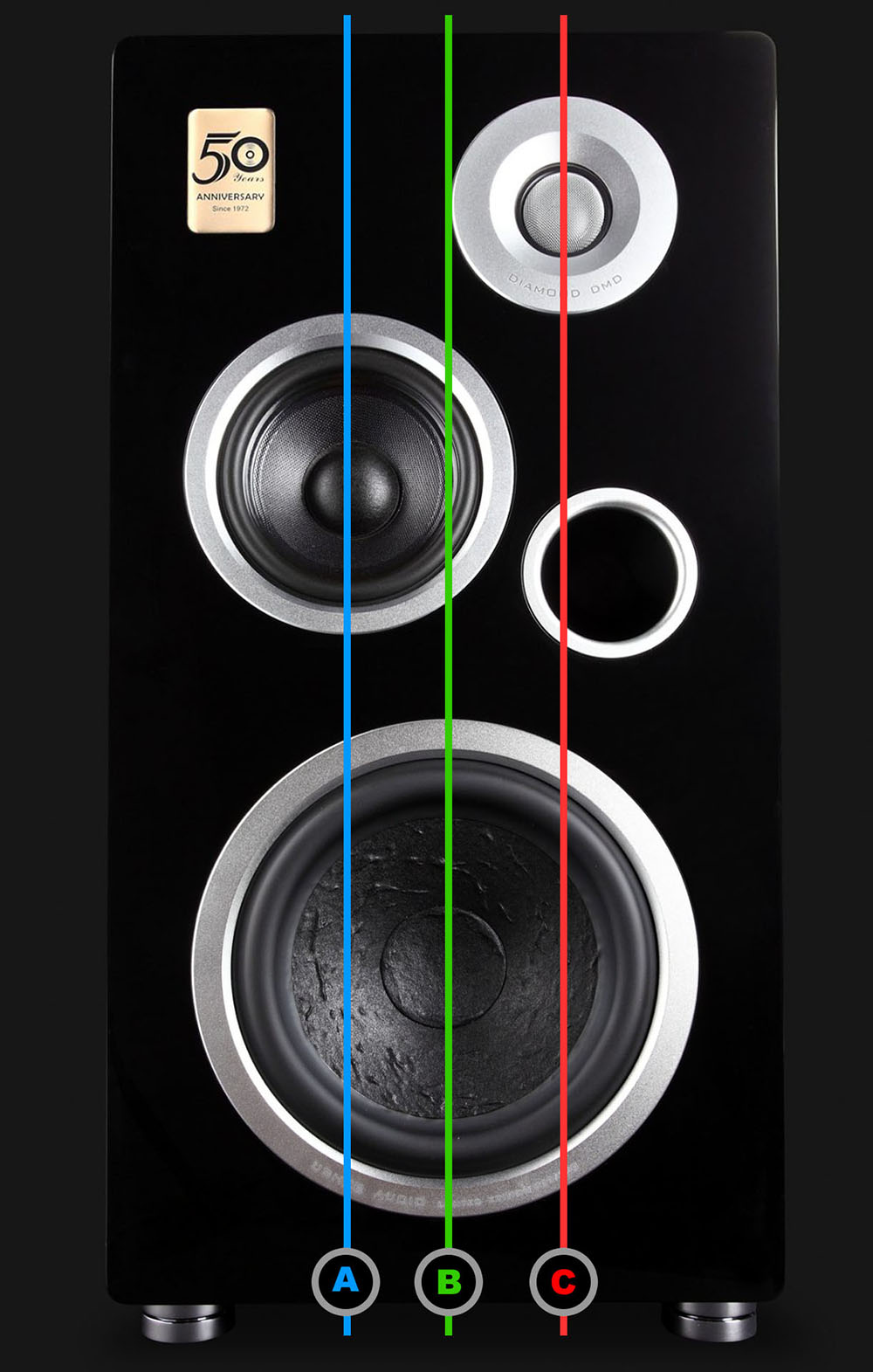 ที่มาของความสนุกที่ได้จากการเซ็ตอัพลำโพงคู่นี้เกิดจากการที่ผู้ผลิตออกแบบตำแหน่งไดเวอร์ทั้ง 3 ตัวให้มีลักษณะที่อยู่ในแกนแนวตั้ง (vertical) ที่ต่างกัน และที่เด็ดกว่านั้นก็คือ ตำแหน่งของไดเวอร์ที่ติดตั้งอยู่บนแผงหน้าของลำโพงทั้งสองข้างจะมีลักษณะที่เป็น mirror image ซึ่งกันและกันอีกด้วย.! นั่นก็หมายความว่า คุณสามารถจัดวางลำโพงทั้งสองข้างได้ 2 แบบ แบบแรกคือ ให้ตำแหน่งของทวีตเตอร์ทั้งสองข้าง “ชี้ออกด้านข้าง” (ภาพบน) กับแบบที่สอง คือวางลำโพงสลับกัน ให้ตำแหน่งของทวีตเตอร์ทั้งสองข้าง “ชี้เข้าด้านใน” (ภาพล่าง) ซึ่งเสียงที่ออกมาจะไม่เหมือนกัน