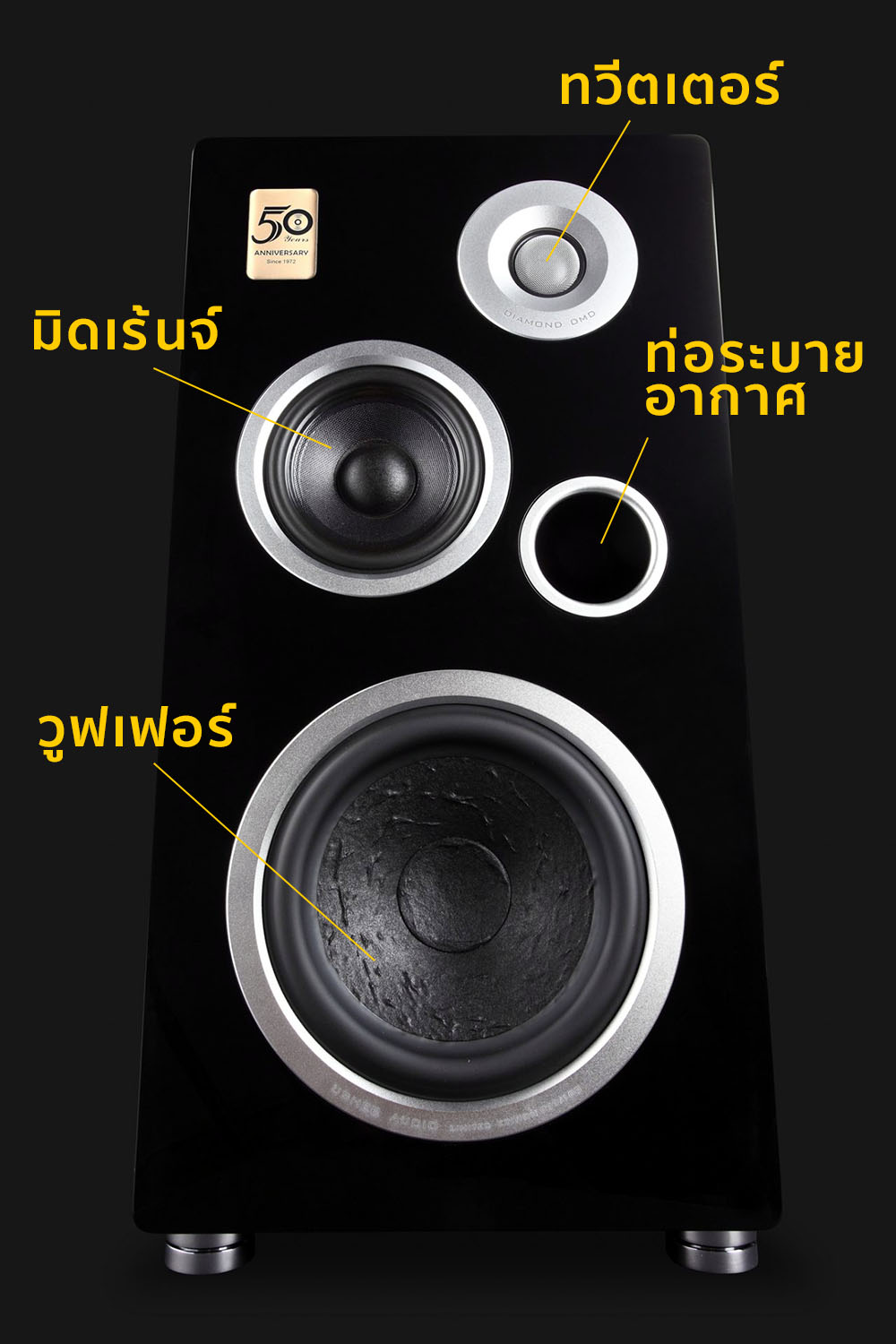 Usher Audio ออกแบบและผลิตไดเวอร์เอง ซึ่งทวีตเตอร์คอมโพสิต DMD หรือ Diamond-Metal-Diamond ของ Usher Audio มีชื่อเสียงเป็นที่รู้จักกันมานาน และเพื่อให้สมกับเป็นลำโพงรุ่นที่ทำออกมาเพื่อเฉลิมฉลองครบรอบ 50 ปี คุณ Lien-Shui Tsai แกเลยตัดสินใจใช้ทวีตเตอร์รุ่น 9980-20DMD ขนาด 1.25 นิ้ว ซึ่งเป็นตัวที่ครอบคลุมความถี่ตอบสนองกว้างที่สุดเท่าที่ Usher Audio เคยทำออกมา เป็นรุ่นที่สามารถขจัดความถี่เรโซแนนซ์ของโลหะออกไปได้จนเกือบหมด ทำให้ได้ความถี่สูงที่ตอบสนองไปได้ไกล สะอาดบริสุทธิ์ ปราศจากสีสัน ถูกกำหนดให้ทำงานในย่านความถี่ตั้งแต่ 2.3kHz ขึ้นไปจนถึง 40kHz ทะลุถึงมาตรฐาน Hi-Res Audio พอดี.!