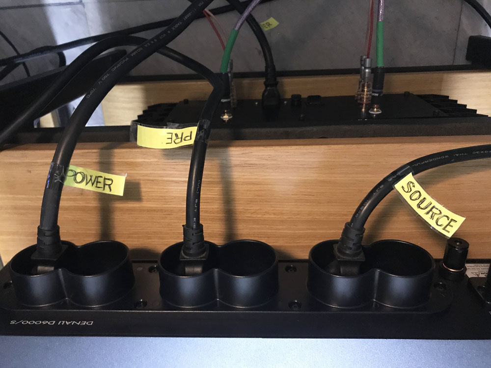 และเพื่อควบคุมตัวแปรให้ได้มากที่สุด ในการเชื่อมต่อระหว่างอุปกรณ์เครื่องเสียงทุกชิ้นในซิสเต็มที่ใช้ทดสอบ ผมก็ใช้สายไฟแถมมากับตัวเครื่อง ซึ่งเครื่องเสียงทุกชิ้นที่ร่วมอยู่ในซิสเต็มทดสอบครั้งนี้ต่างก็ใช้ปลั๊กแบบสามขา IEC-C13 (male-to-female) เหมือนกันทั้งหมด จึงง่ายต่อการควบคุม