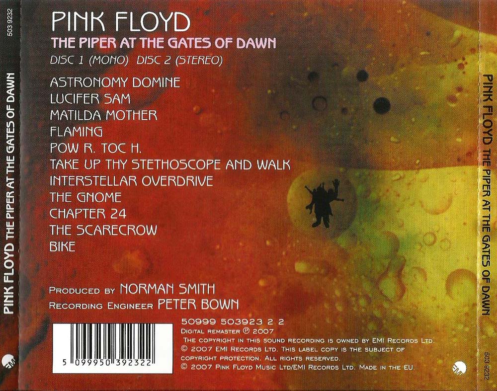[1] อัลบั้ม ‘The Piper at the Gates of Dawnเป็นผลสำเร็จในการจับเอาสองด้านของดนตรีแนวทดลองและไซเคเดลิคเข้าไว้ด้วยกัน นำมาผูกกันด้วยความพึงพอใจของญาณสัมผัสและจิตใจของคนหรือปัจเจกชนผู้หนึ่ง ส่งสารและความคิดขยายออกไป ภายใต้รากฐานและความน่ากลัวของความผิดปกติแสนสับสนอย่างไม่เป็นระเบียบของภาวะจิตเวช