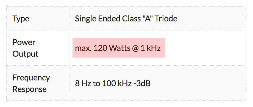 เมื่อมาเจอแอมป์หลอดซิงเกิ้ลเอ็นด์โมโนบล็อกคู่นี้ขับลำโพง Sasha W/P Series 2 ผมเลยเกิดอาการกังวลเล็กๆ เพราะก่อนหน้านี้ โดยส่วนตัว ผมไม่คุ้นเคยกับแอมป์ฯ ยี่ห้อนี้มาก่อน เคยเห็นผ่านๆ แต่ไม่มีโอกาสได้สัมผัสใกล้ชิดสักที ทราบคร่าวๆ แต่ว่าเป็นเพาเวอร์แอมป์หลอดซิงเกิ้ลเอ็นด์ ก็เลยเกรงว่ามันจะขับ Wilson Audio คู่นี้ออกรึเปล่าหว่า..??? แต่พอลงมือเซ็ตอัพแล้วจึงรู้ว่าพอไหว เมื่อเข้าไปเช็คสเปคฯ ของเพาเวอร์แอมป์คู่นี้ จึงทราบว่ามันให้กำลังขับสูงถึง 120W เลยทีเดียว! ถือว่าเป็นเพาเวอร์แอมป์หลอดซิงเกิ้ลเอ็นด์ที่ใช้หลอดเอ๊าต์พุตแค่ข้างละหลอดเดียว แต่ให้กำลังขับเยอะมาก