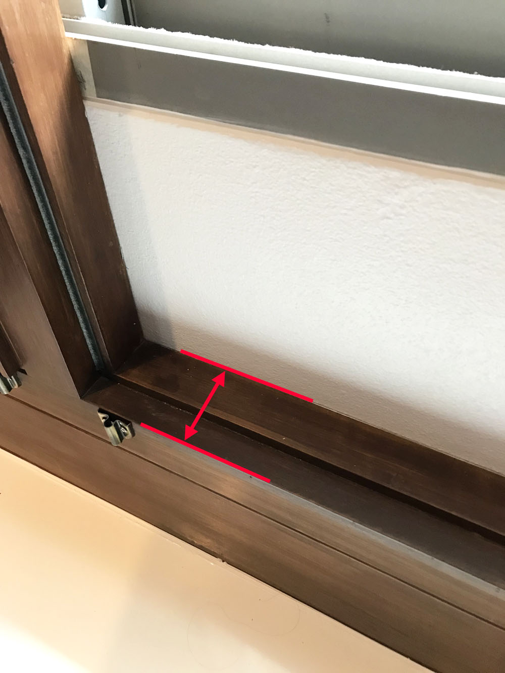 ภาพนี้แสดงให้เห็นความหนาของผนังที่สร้างทับผนังปูนเดิมขึ้นมา คะเนจากระยะระหว่างเส้นสีแดงอยู่ที่ประมาณ 10 ซ.ม. เมื่อวัดระยะซ้าย–ขวาภายในห้องจึงเหลือประมาณ 4.8 เมตร
