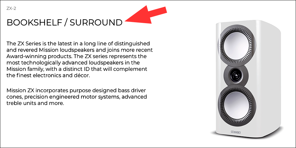 เป็นลำโพงสองทางวางขาตั้ง หนึ่งในสองรุ่นที่อยู่ในซีรี่ย์ ZX ของ Mission